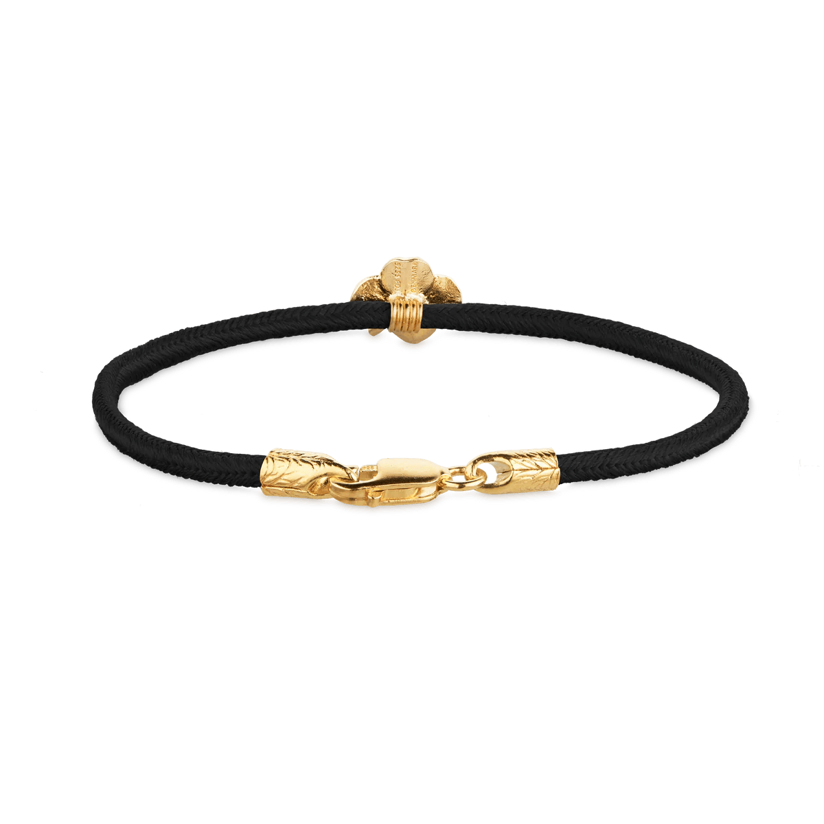 Flora Danica Klavertje Vier Zijden Armband Zwart - Verguld