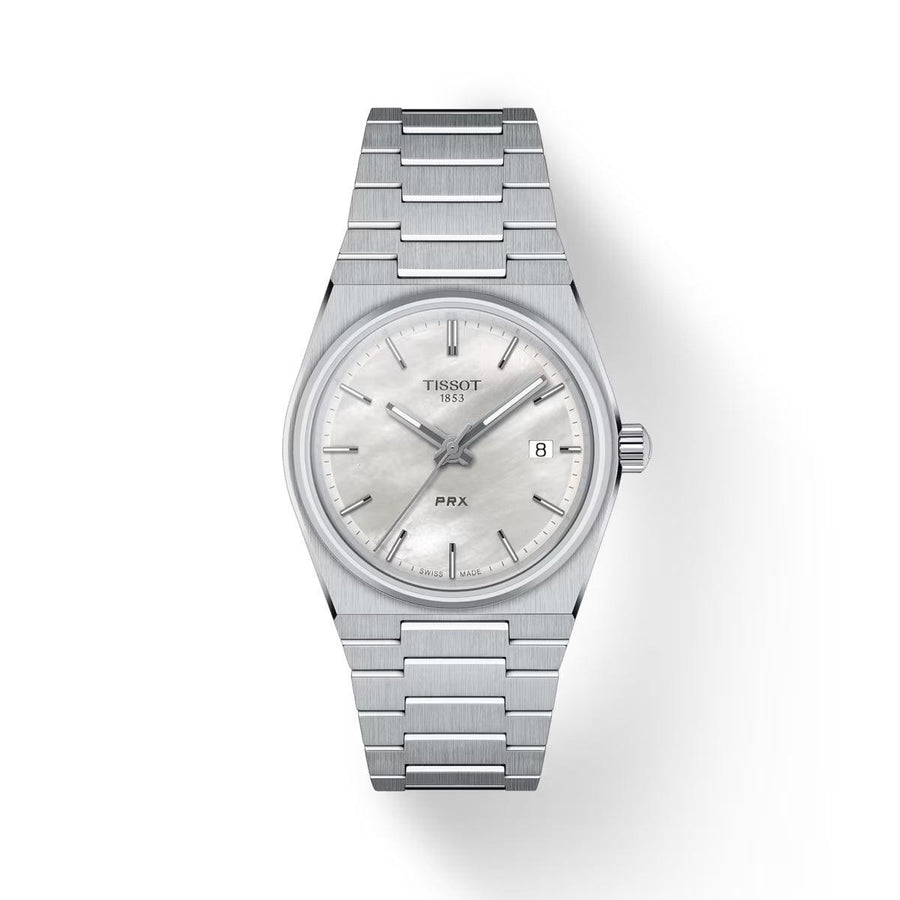 TISSOT PRX 35MM WITTE PARELMOER WIJZERPLAAT: