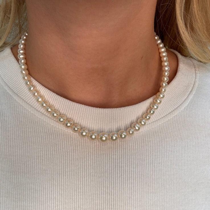 Het TREASURE parelsnoer uit de Mads Z Gold Label collectie is een mooie en elegante toevoeging aan je sieradencollectie. Deze ketting is gemaakt van 14 karaat goud en in een prachtig proces versierd met gekweekte parels. Je kunt de lengte van de ketting aanpassen van 42 cm tot 45 cm om de perfecte pasvorm te bereiken.
