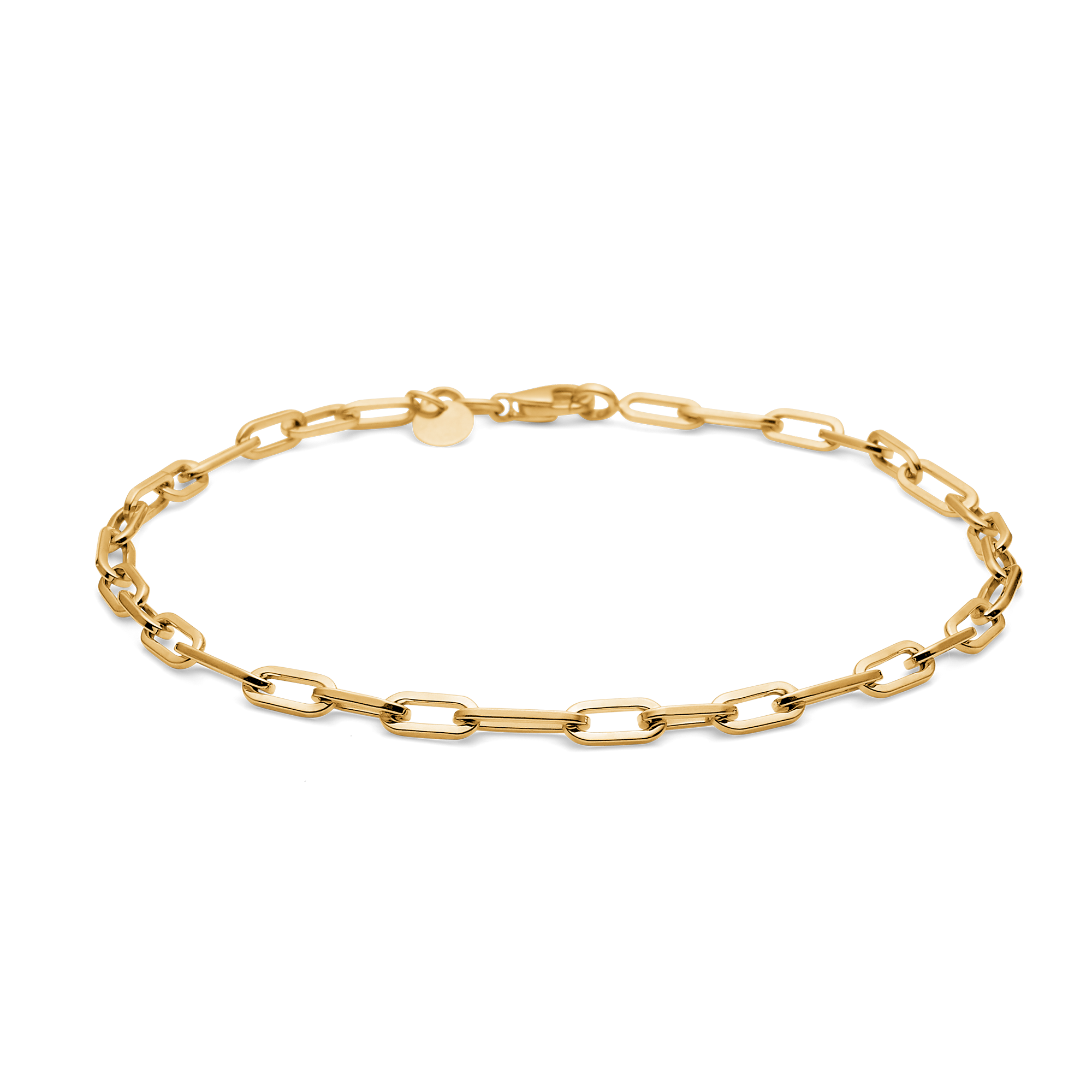 Creëer een sterke en elegante uitstraling met de Gaia schakelarmband van Mads Z. Het stuk is gemaakt van massief 8-karaats goud en heeft open schakels die de armband een moderne, luchtige en sculpturale uitstraling geven.