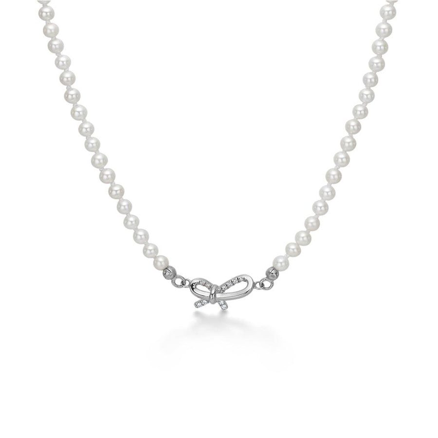 Mads Z Miss Butterfly zilveren parelketting met strikhanger