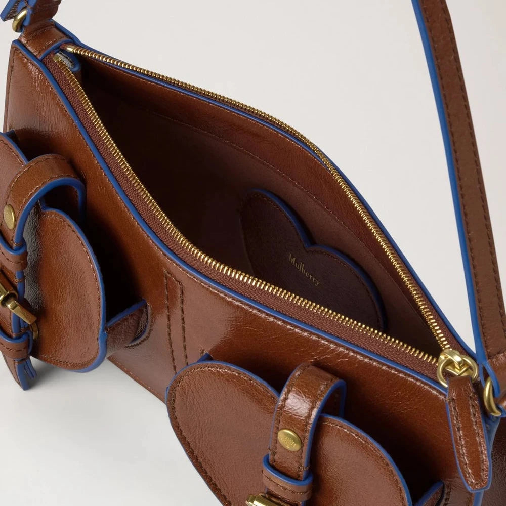 Mulberry Mini Roxanne Heart Schouder Eiken-Pigment Blauw
