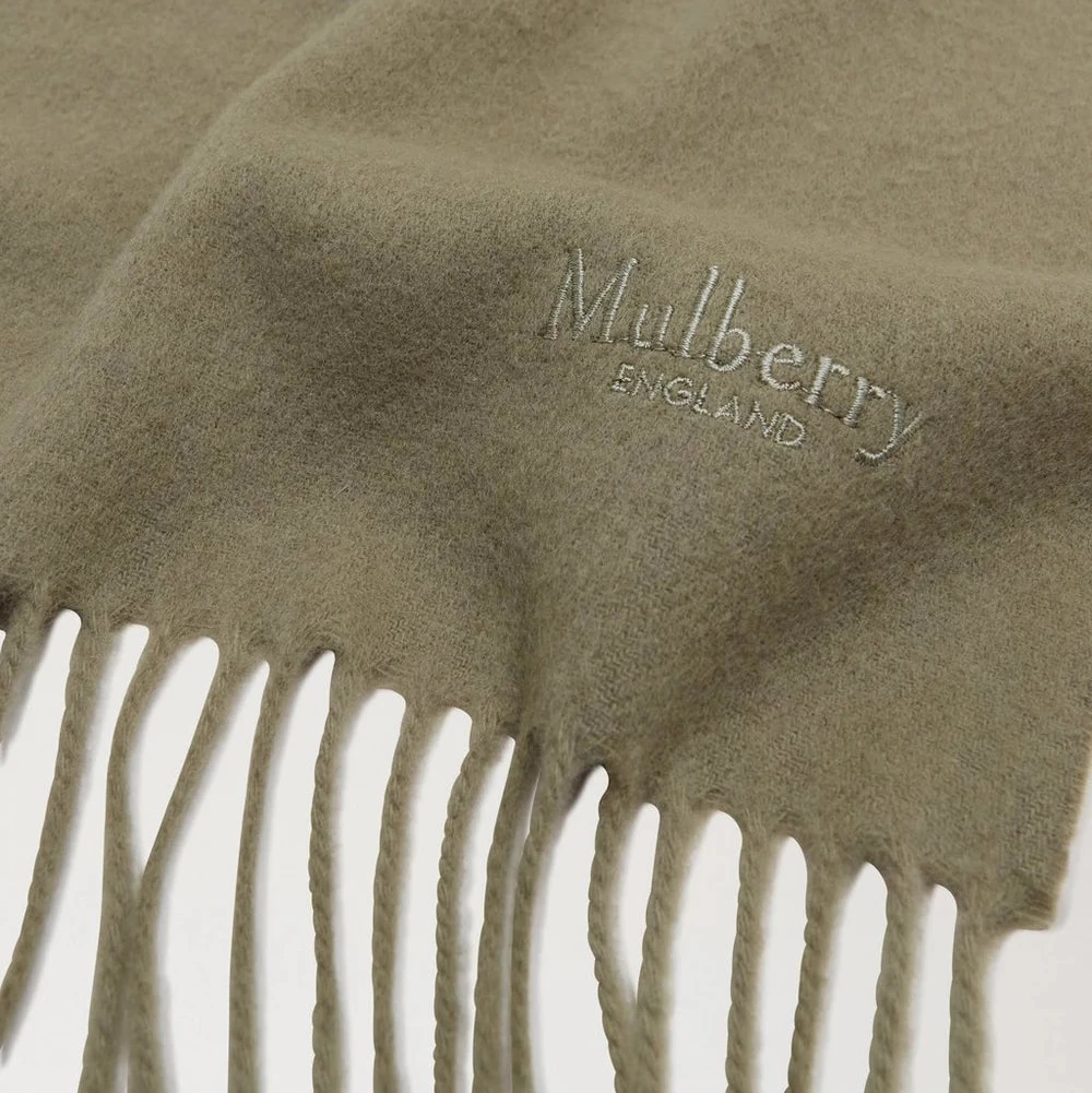 Door het simpele, effen kleurdesign is de sjaal makkelijk te matchen met iedere garderobe, dankzij de fijne franjes en zo geborduurd Mulberrylogo geeft een discrete, exclusieve uitdrukking. Gemaakt in Groot-Brittannië met de nadruk op kwaliteit en klassiek vakmanschap.