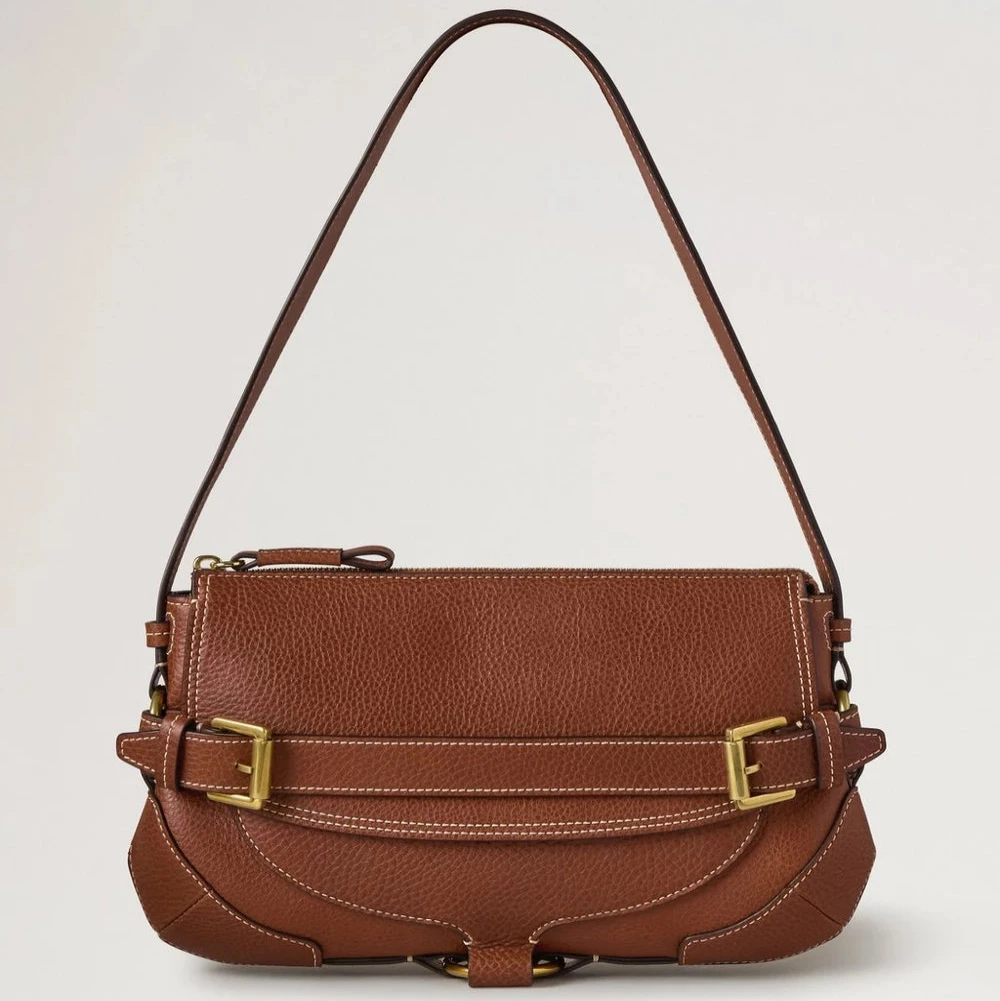 Mulberry Lennox-schoudertas in Erfgoed NVT Eik is een moderne en verfijnde interpretatie van de op het archief geïnspireerde Tyler-tas. Hier krijg je een stevige schoudertas met veel karakter, waarbij de iconische Mulberry-details worden gecombineerd met een meer rauwe en rebelse uitstraling. De opvallende riem- en gespdetails geven de tas een stoere look, terwijl de ringdetails de dynamiek van het ontwerp benadrukken.