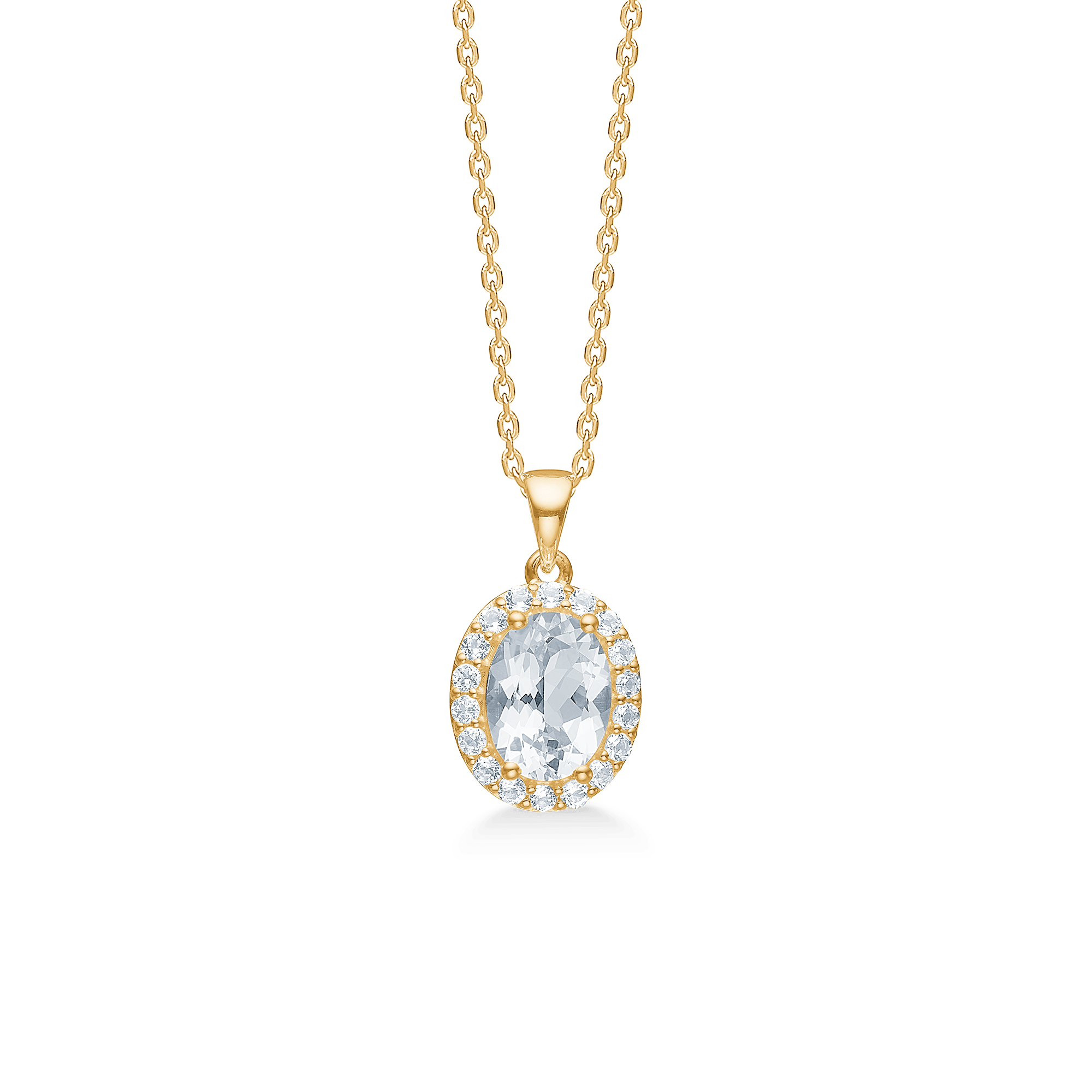 - Steen: Witte topaas, omgeven door witte zirkonia