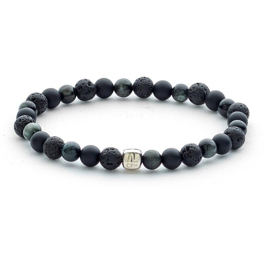Deze handgemaakte armband van Alexander Lynggaard is gemaakt met stenen van 6 mm die een prachtige zwarte en grijze kleur hebben. De armband is ontworpen om zowel stijlvol als functioneel te zijn, met een AL-logokubus in geoxideerd sterlingzilver die een rauwe en verfijnde toets toevoegt. Het is geregen aan een duurzaam elastisch siliconenkoord dat zorgt voor een comfortabele pasvorm en eenvoudig gebruik.