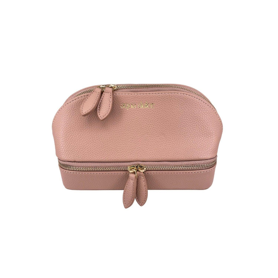 Dit slimme Big Rose Sieradendoosje en Make-uptasje in één, is in een mooie roze kleur, van Aqua Dulce.