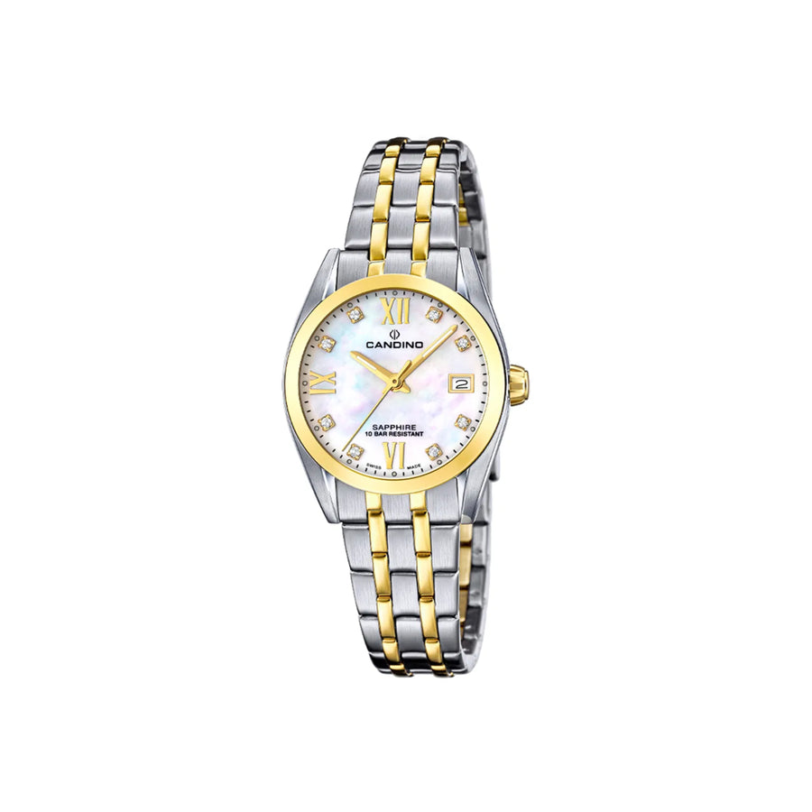 Candino dameshorloge tweekleurig met stenen op de wijzerplaat