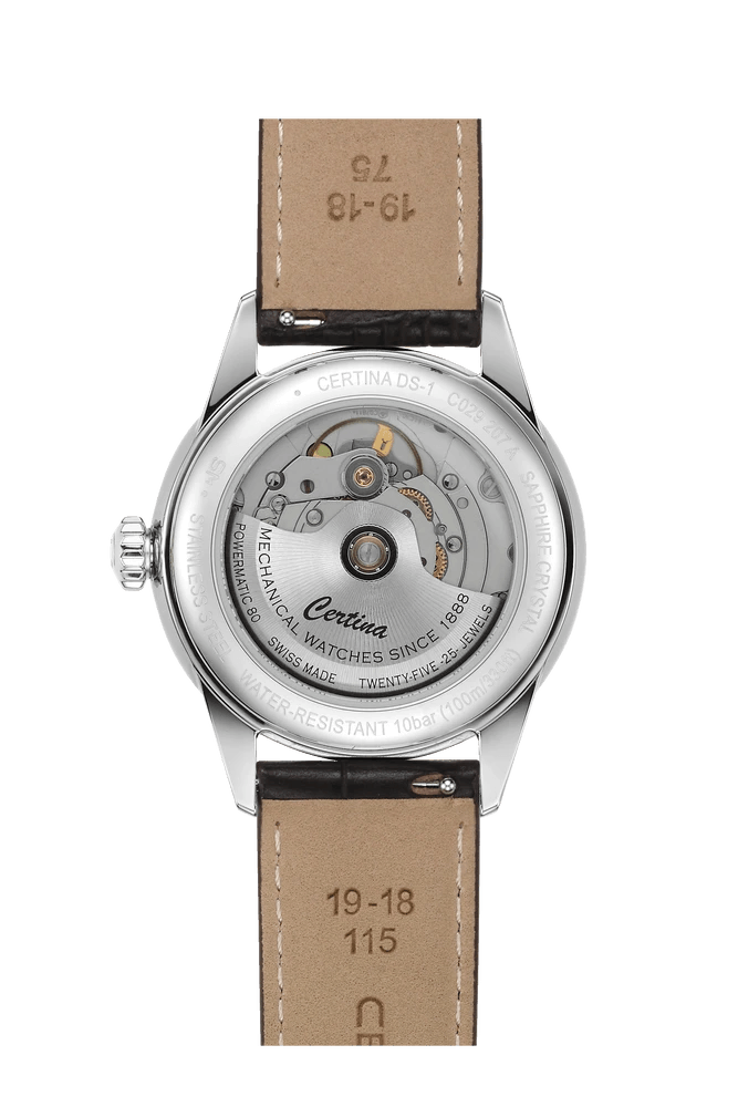Certina DS-1 38 mm groene wijzerplaat zwarte leren band - Powermatic 80: Herenhorloge ∙ Automatisch ∙ Groen ∙ Quick-release systeem ∙ Leer