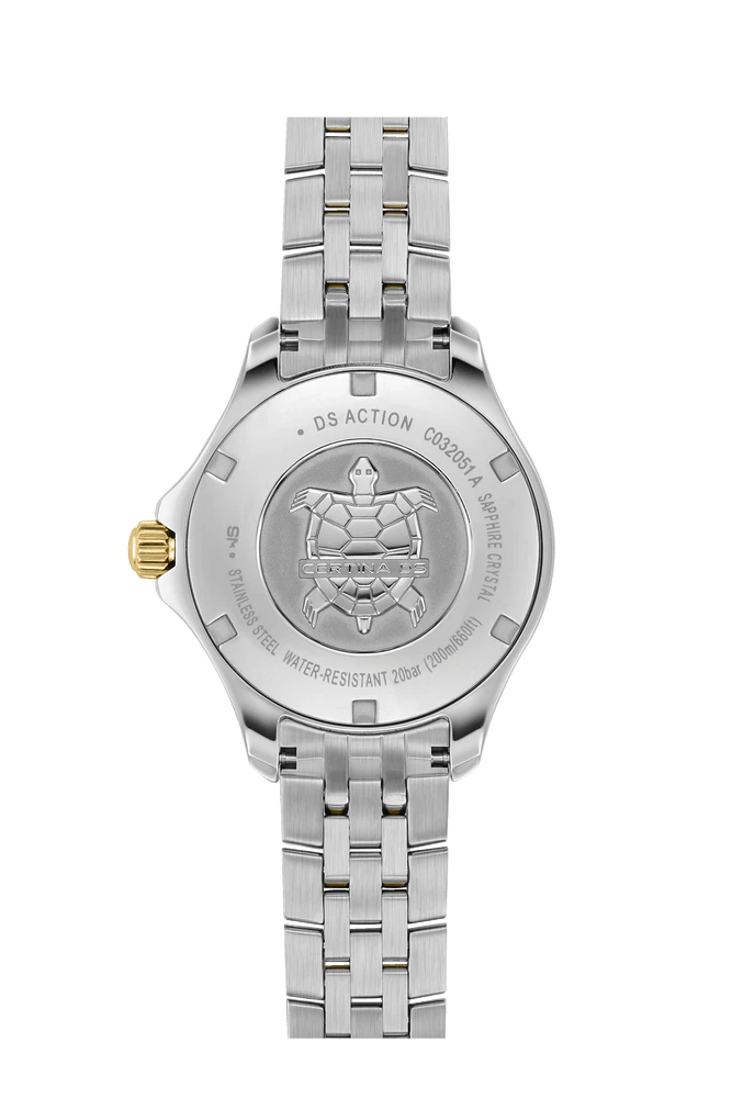 De Certina DS Action Lady Diamonds is een elegant en tijdloos dameshorloge dat Zwitserse precisie combineert met een luxueus design. Met een parelmoeren wijzerplaat versierd met diamanten en een duurzame roestvrijstalen kast met PVD-coating is dit horloge zowel mooi als duurzaam. Het horloge is waterdicht tot 20 bar, wat hem geschikt maakt voor zowel dagelijks gebruik als speciale gelegenheden.