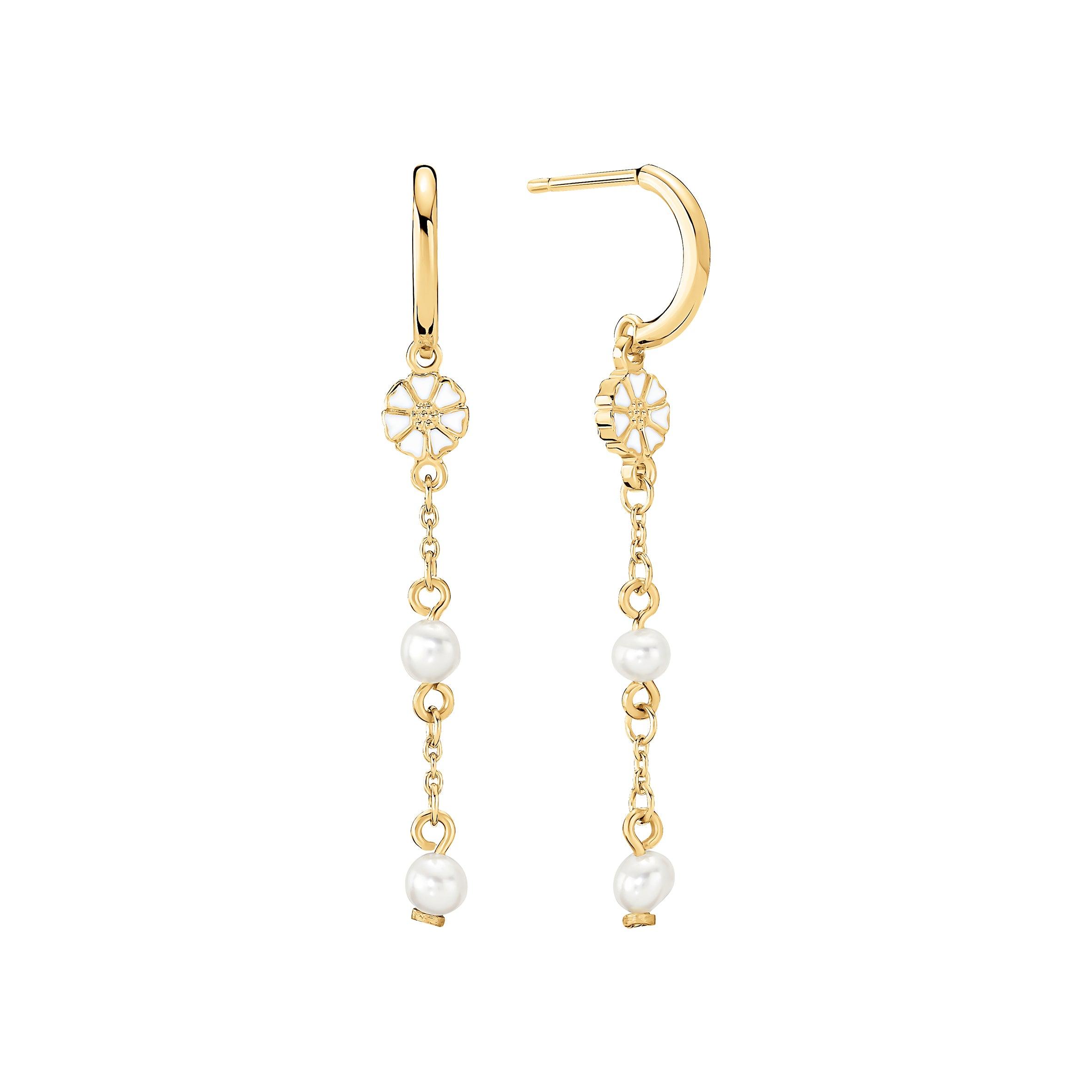 Lund Copenhagen Marguerit Oorbellen met 2 zoetwaterparels: