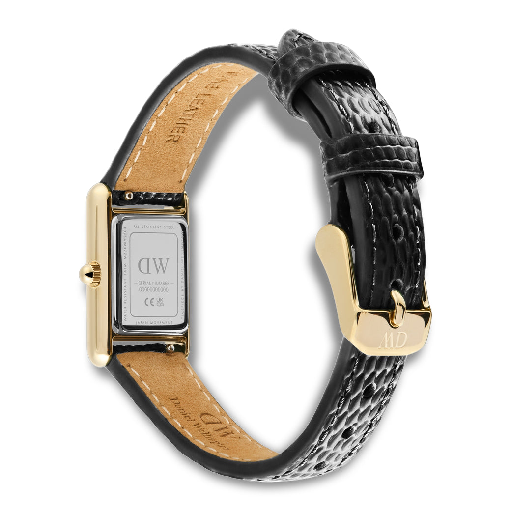 De Daniel Wellington Bound Mini is een fijnere en vrouwelijkere interpretatie van het klassieke ontwerp. Met zijn kleinere wijzerplaat en slanke zwarte leren band creëert hij een elegante en verfijnde uitstraling die perfect is voor zowel het dagelijks leven als feestjes.