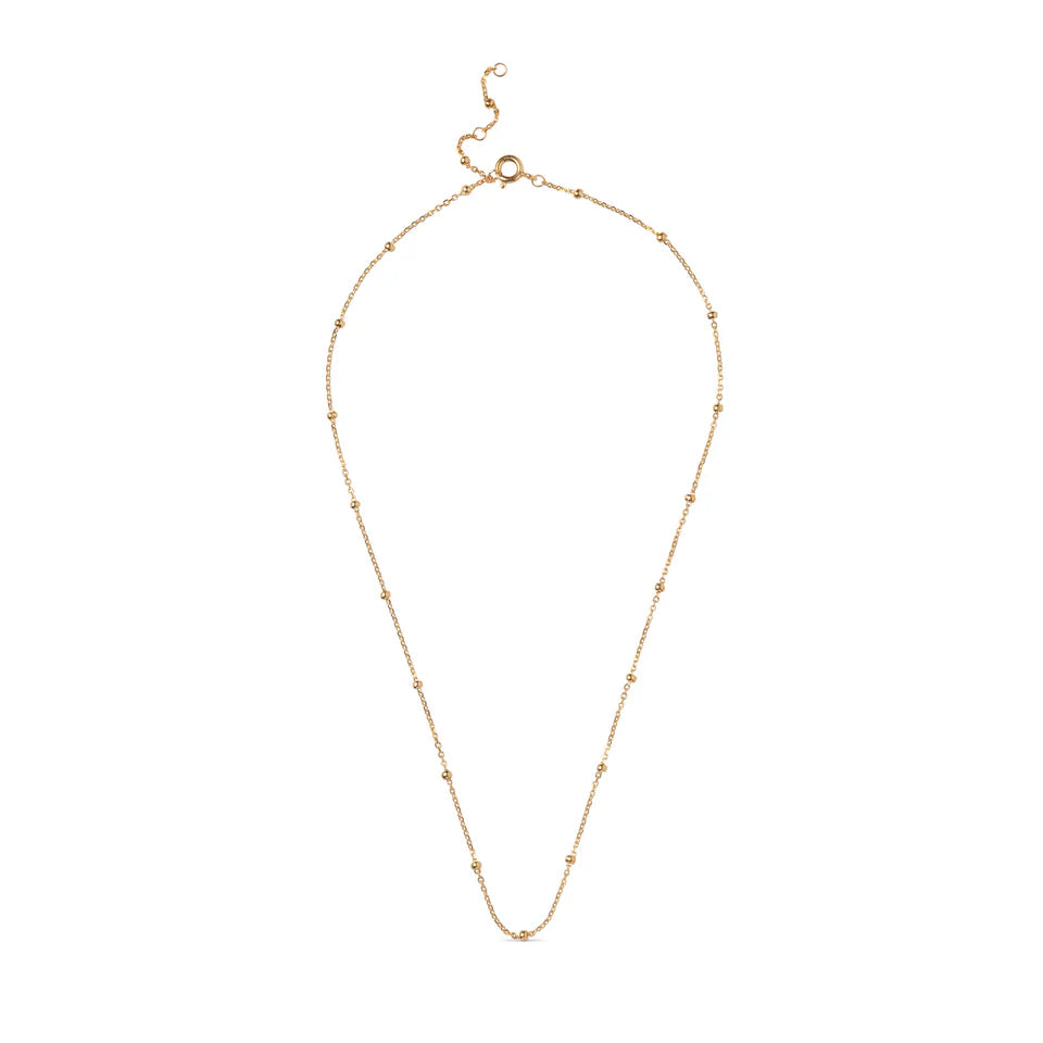 Ketting met kralen van Enamel is een fijne en vrouwelijke ketting versierd met kleine discrete bolletjes die een vleugje exclusiviteit aan je look toevoegen. Het minimalistische design maakt de ketting perfect voor dagelijks gebruik, maar is ook makkelijk te combineren met andere sieraden voor een persoonlijkere expressie.