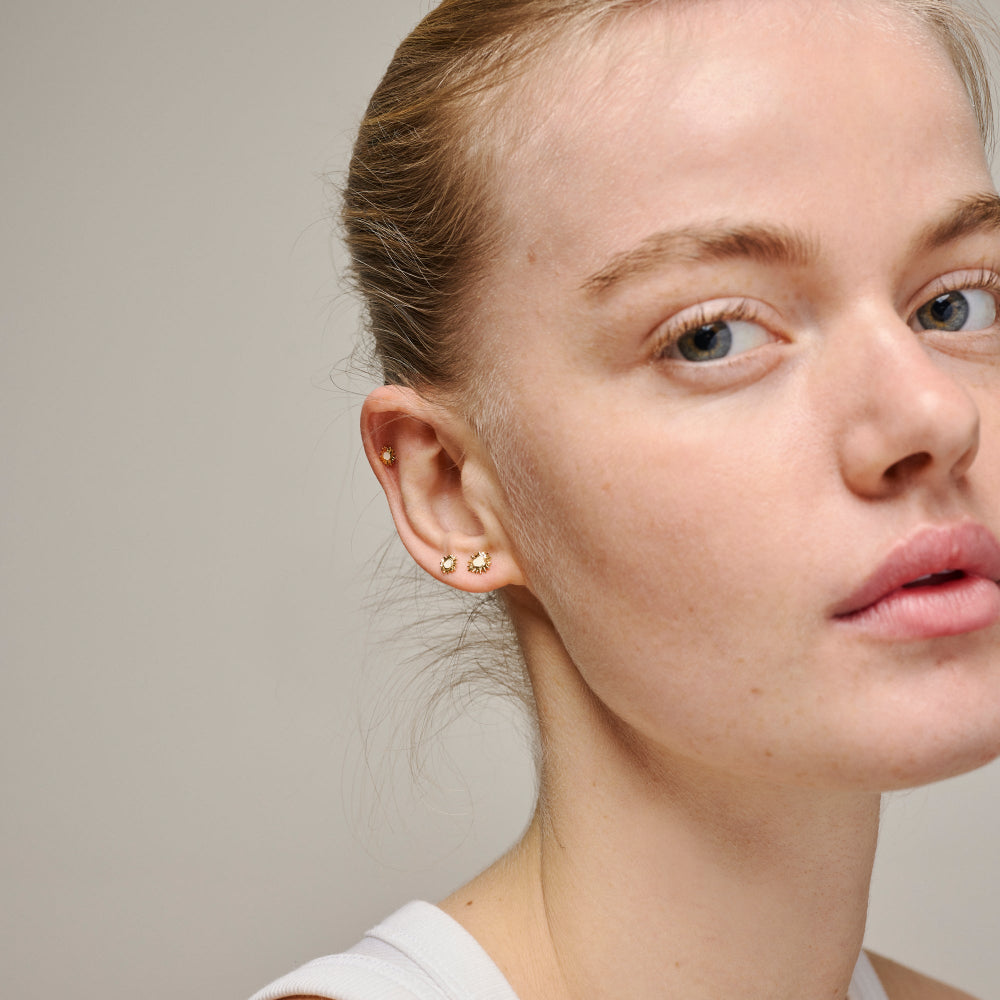 Enamel Copenhagen Kleine Sunshine-oorbellen in beige en verguld 925 sterling zilver