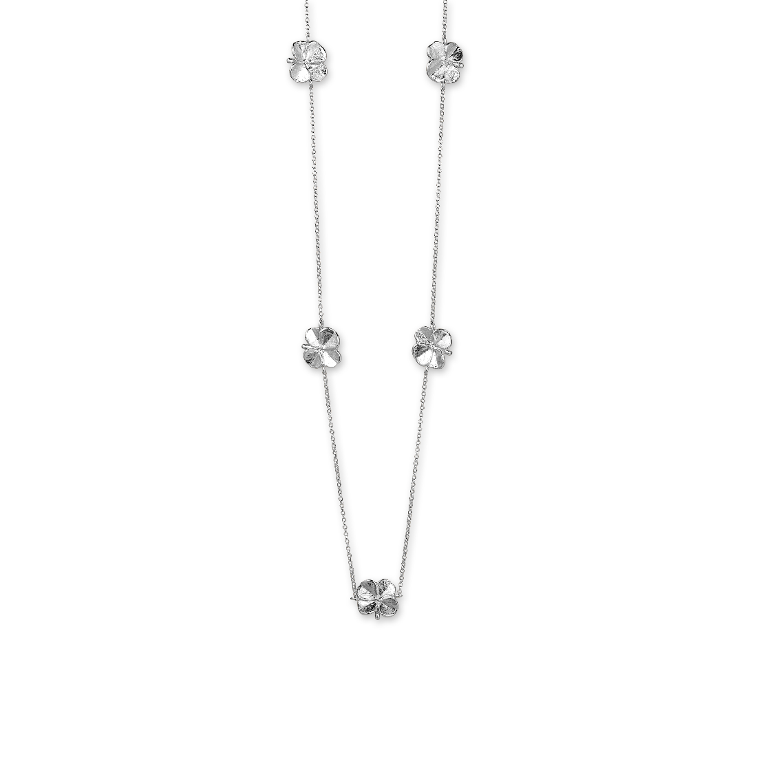 Flora Danica Klavertje vier ketting met vijf klavertjes in zilver