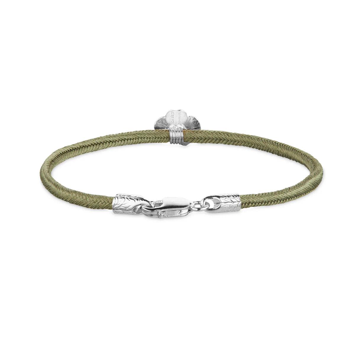 Flora Danica Klavertje Vier Zijden Armband Olijf - Zilver