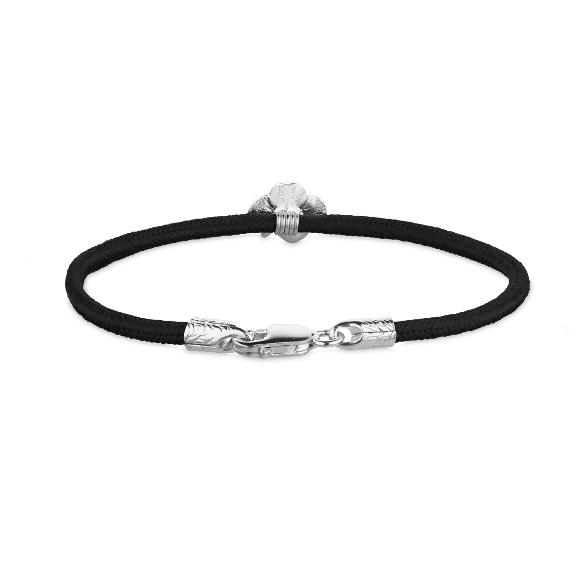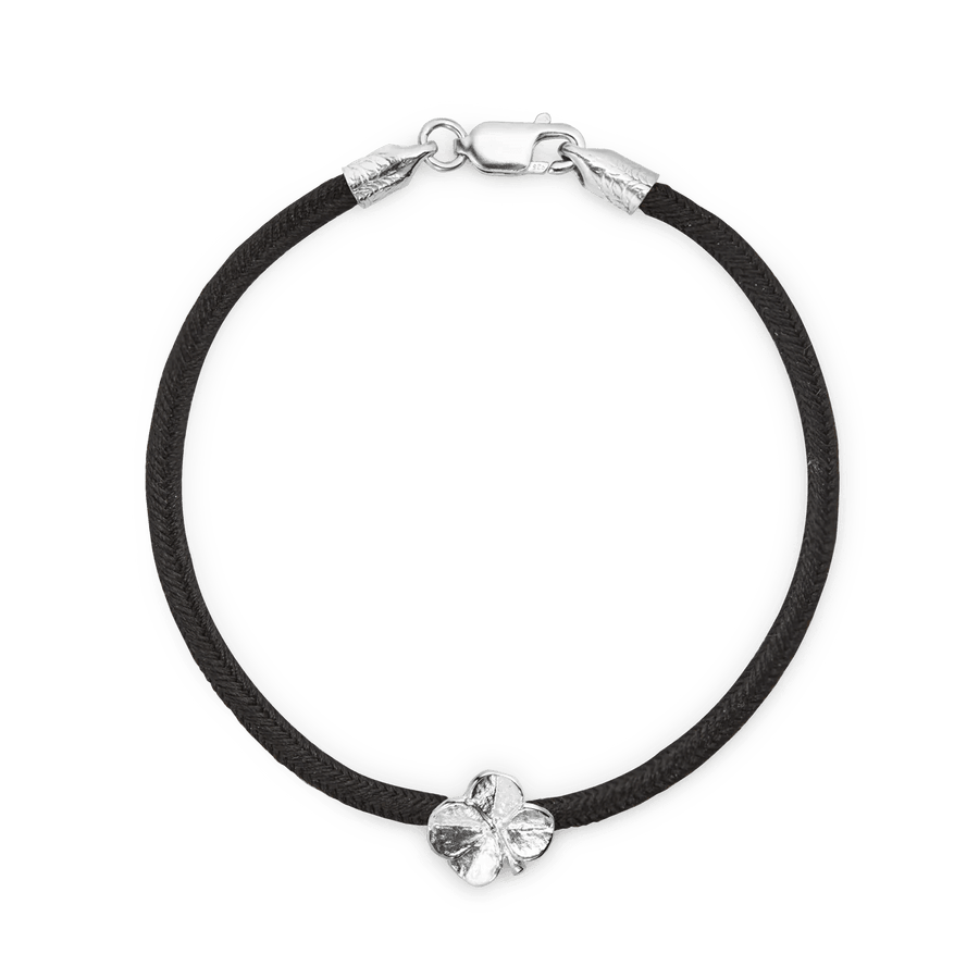 Flora Danica Klavertje Vier Zijden Armband Zwart - Zilver