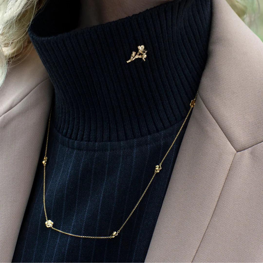 De broche is handgemaakt van het beste 925 sterling zilver, bedekt met 22-karaats vergulding.