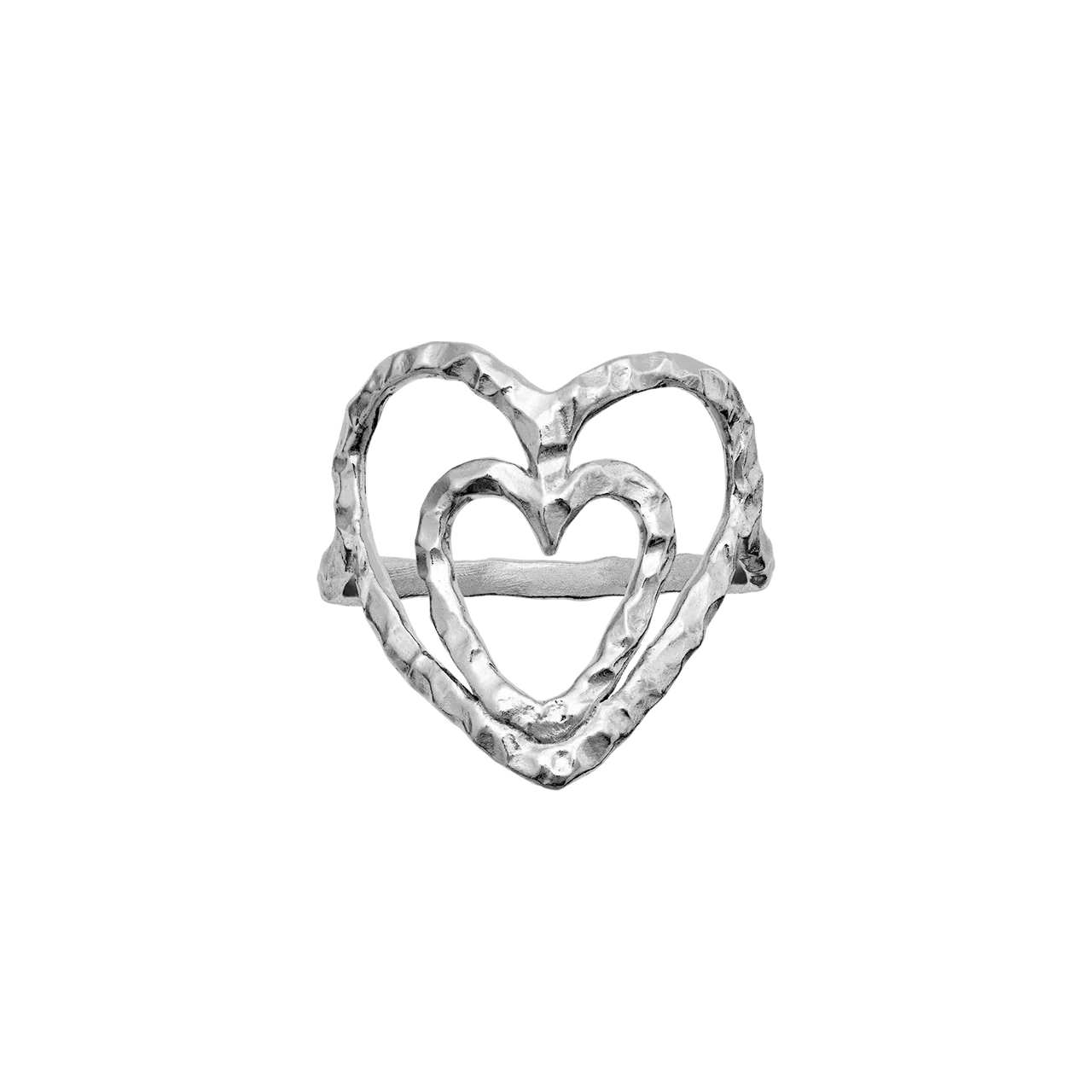 Maanesten Felicity Ring i sølv er en romantisk og karakterfuld hjertering med et organisk og levende udtryk. To teksturerede hjerter smelter sammen i designet og skaber en smuk symbolik om kærlighed i flere lag – den indre og den ydre, den stille og den stærke.