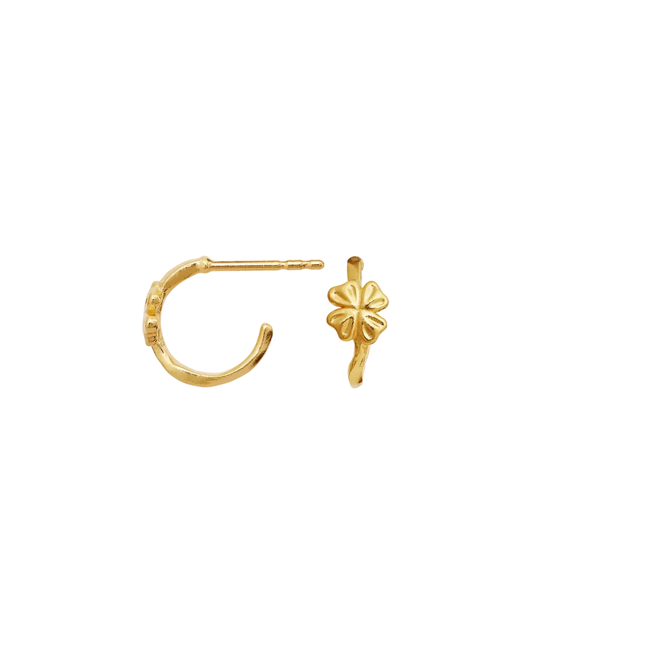 De klavertjes zijn een integraal onderdeel van het ontwerp en geven een strakke, moderne uitstraling zonder losse hangers. De warme 18kt. het vergulden voegt een gouden gloed toe die de zachte vormen benadrukt en de oorbellen zowel vrouwelijk als tijdloos maakt. Onderdeel van de Maanesten SS26-collectie met een focus op symbolen van de natuur en persoonlijke betekenis.