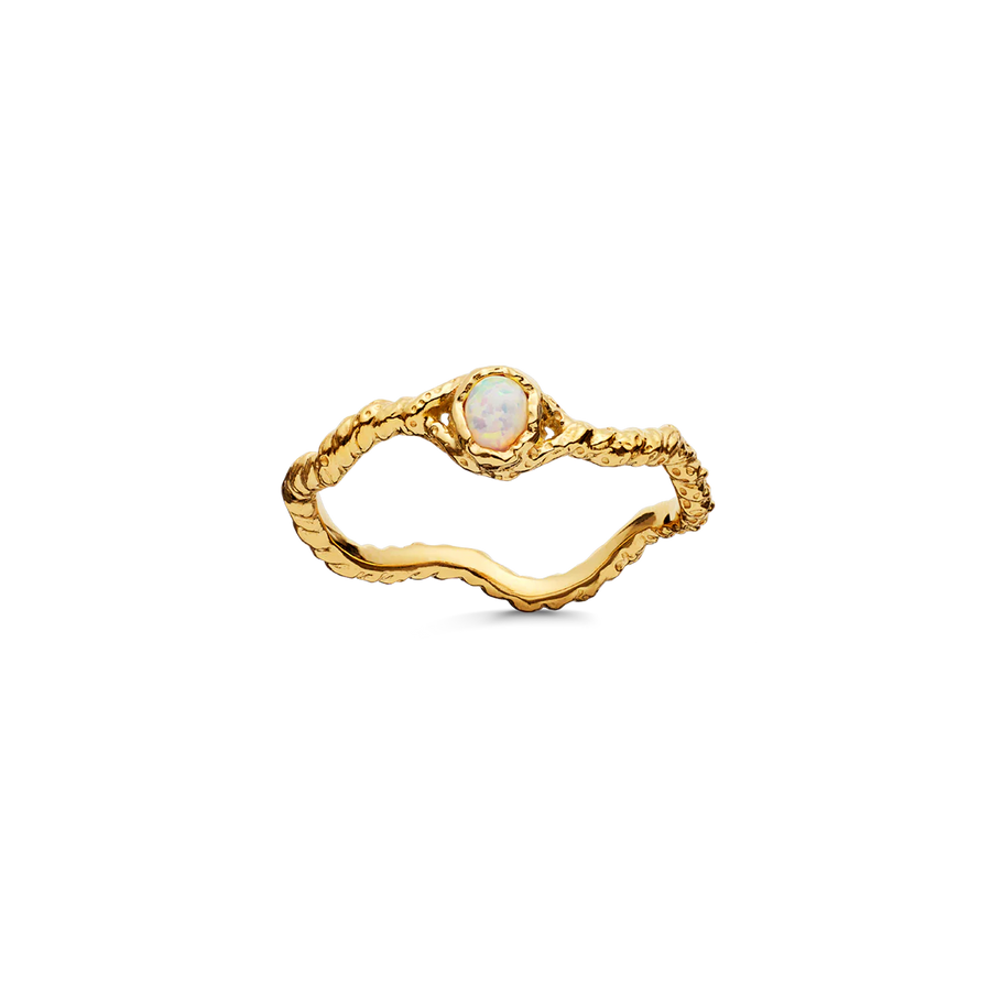 De Lisa ring van Maanesten heeft een prachtige gedraaide en golvende textuur die het sprankelende opaal elegant benadrukt. Deze ring combineert vrouwelijk design met een persoonlijke expressie en voegt een verfijnde toets toe aan elke stijl.