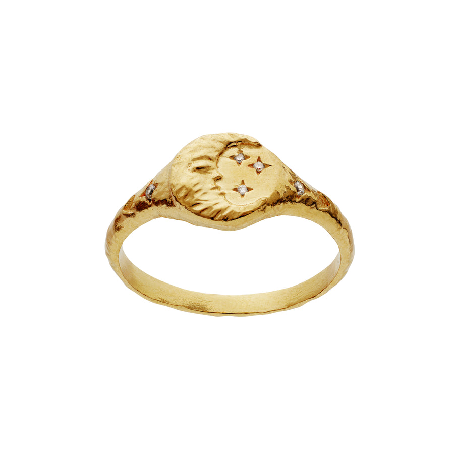 Maak je look compleet met de Magdalena ring van Maanesten. De kleine, vrouwelijke halve maan fungeert als een talisman en herinnert je eraan om je eigen levensfase met trots en vertrouwen te bezetten. De sprankelende witte zirkonia's geven de ring een elegante en verfijnde touch.