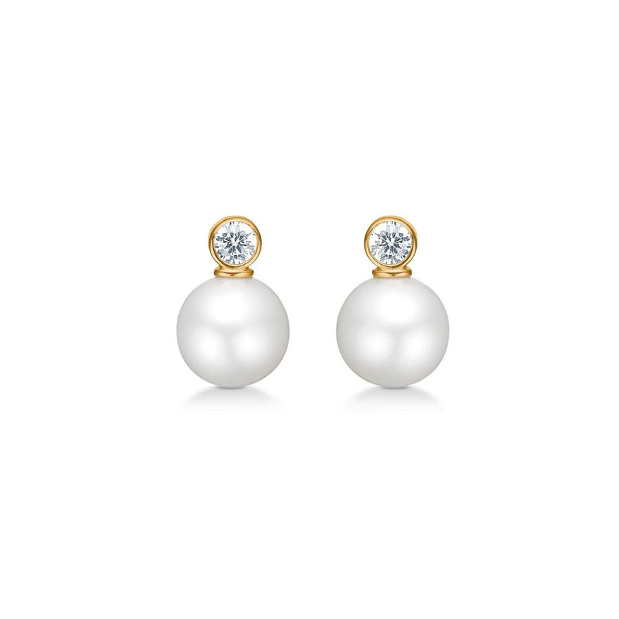 Mads Z Iris Pearl Stud Oorbellen in 8 karaat goud met zirkonia: