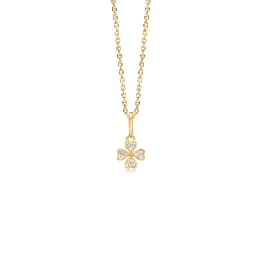 Mads Z Petite Klavertje vier hanger in 8 karaat goud met zirkonia: