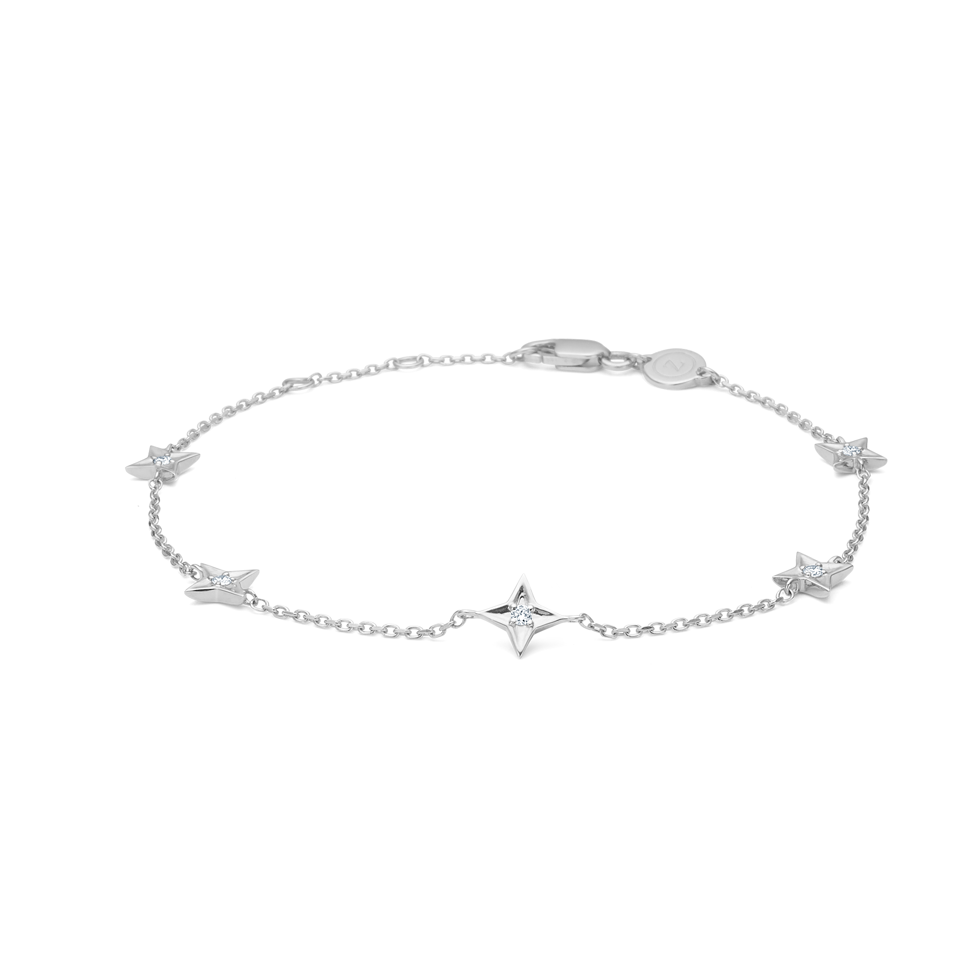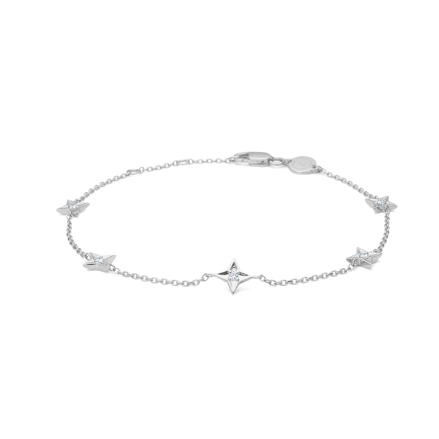 De gebogen sterren vormen een mooi contrast met de fijne ankerketting, die een lichte en elegante uitstraling geeft. De armband meet 16 cm en heeft een verlengkettinkje van 2 cm, zodat je de pasvorm naar wens kunt aanpassen.