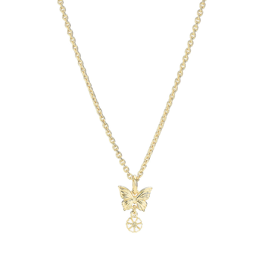 Lund Copenhagen Madeliefjeketting met vlinder – 5 mm, 24kt verguld zilver met wit emaille: