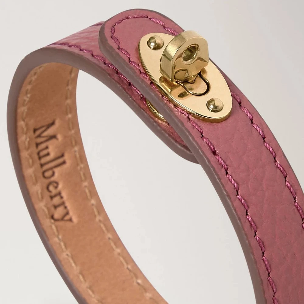 De armband is gemaakt van Small Classic Grain leer en afgewerkt met Mulberry's iconische Postman's Lock sluiting. De binnenkant is reliëf Mulberry-signatuur en de gouden messing details benadrukken de exclusieve expressie, terwijl het smalle silhouet een verfijnde en vrouwelijke uitstraling geeft.