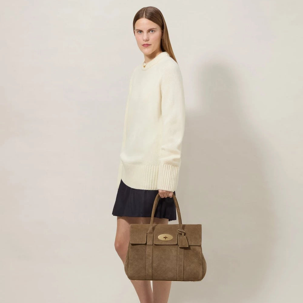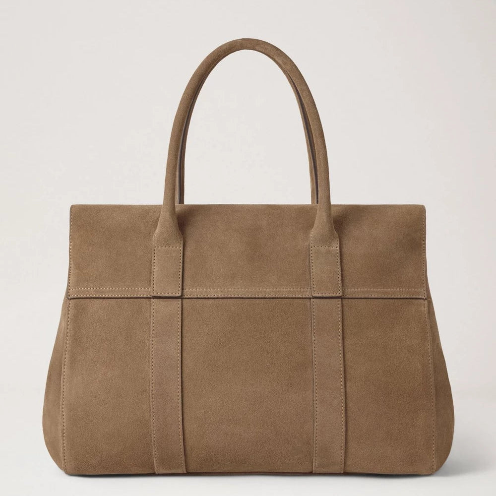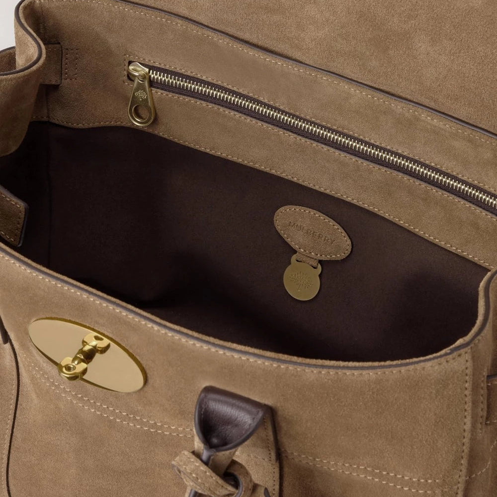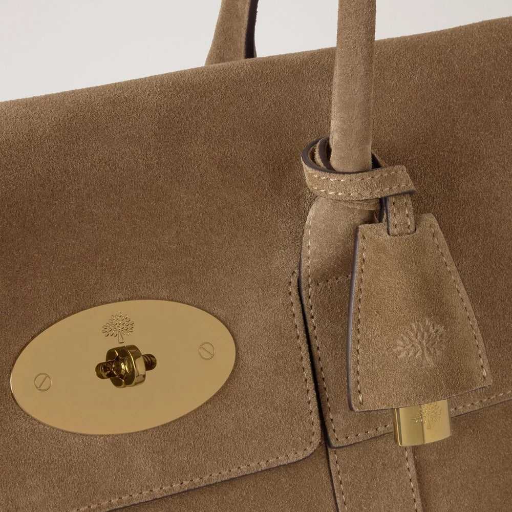 De tas is gemaakt van Salcombe Sand suède, wat een zachte en elegante uitstraling geeft. Het exclusieve suède is behandeld voor verhoogde duurzaamheid en functionaliteit, waardoor de tas makkelijker te onderhouden is in het dagelijks leven. De messingkleurige details en de klassieke handgreep aan de bovenkant maken het iconische ontwerp compleet Mulberry- kijk.