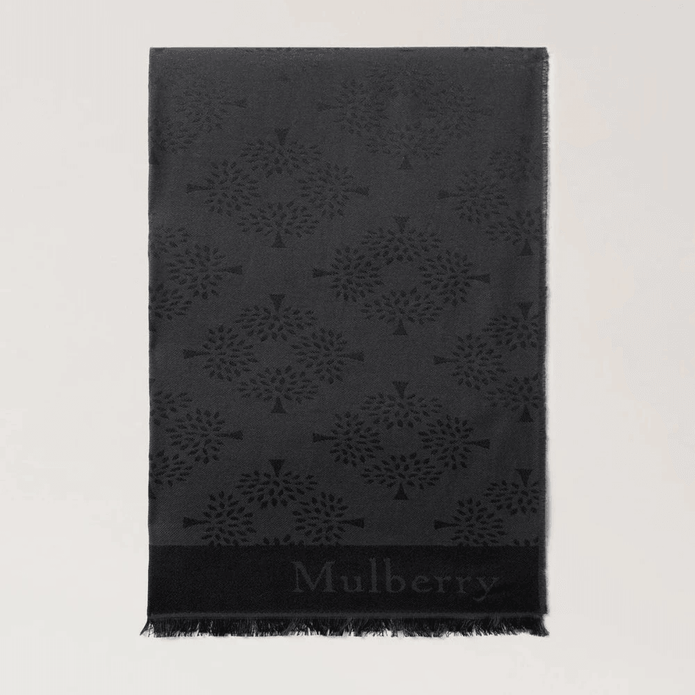 Een lichte en elegante sjaal van Mulberry, gemaakt in een luxe mix van biologisch katoen en zijde. De iconische Mulberry Boommotief en zachte franjes maken de sjaal tot een veelzijdig accessoire, perfect voor elk seizoen.