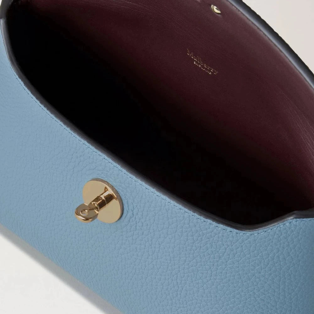 Houd je favoriete make-up bij in het mooie Darley Cosmetisch zakje van Mulberry in de kleur lichtblauw. Deze tas wordt geleverd met het iconische Postman's Lock in gouden hardware, wat een elegante en tijdloze toets toevoegt. Gebruik hem ook als leuke kleine clutch om je look compleet te maken. De buitengewone leerkwaliteit zorgt ervoor dat het met de tijd alleen maar beter wordt.