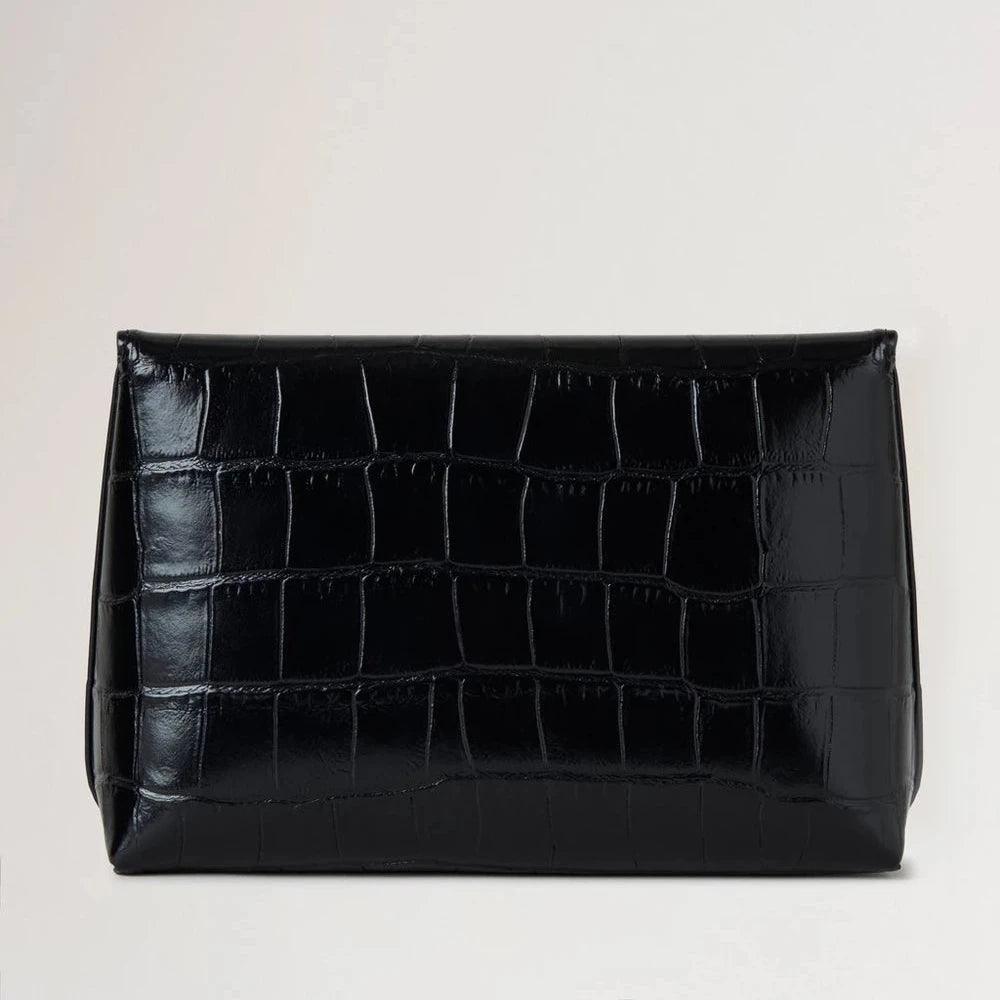 Mulberry Darley Cosmetic Pouch Black Shiny Small Croc Cosmetische tas