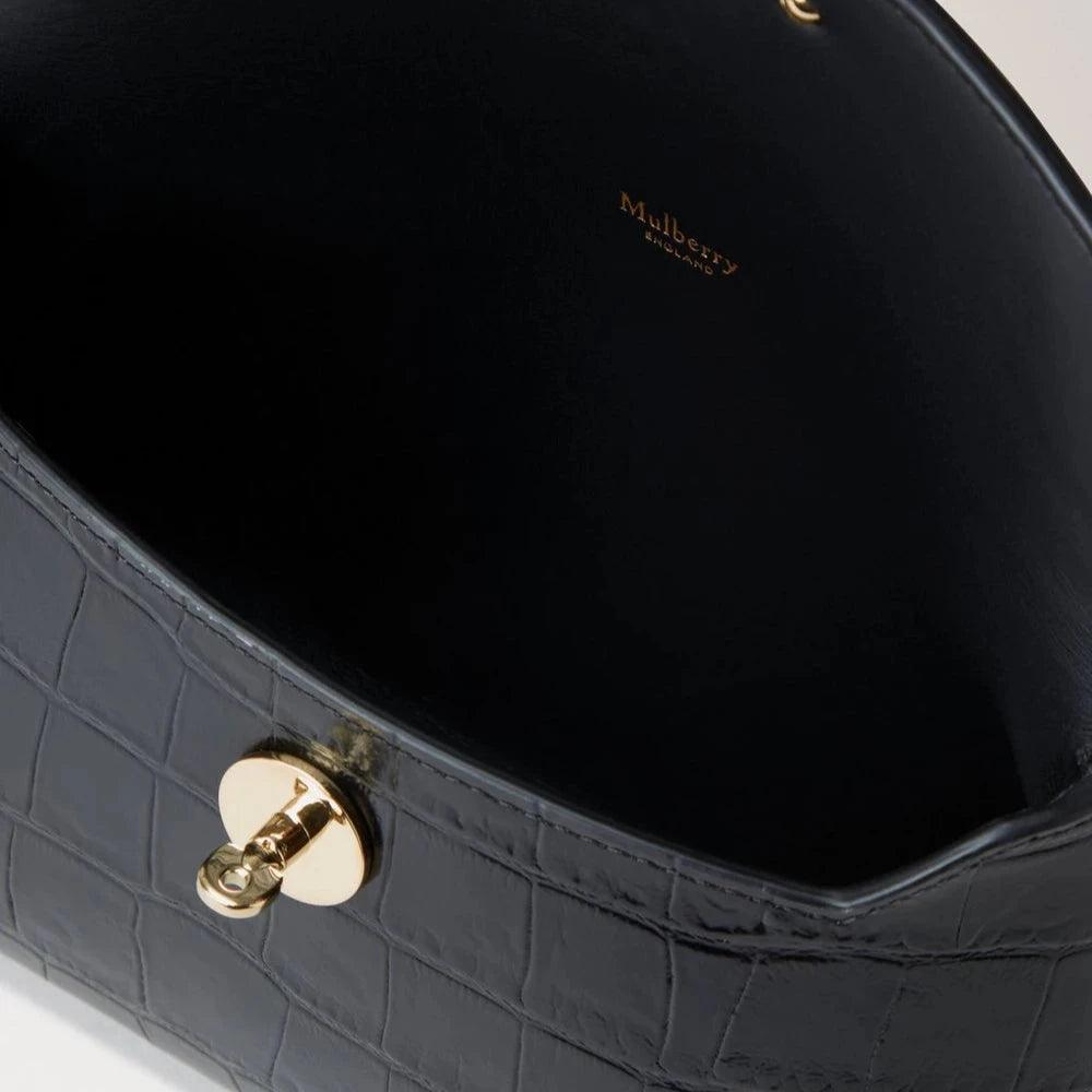 Mulberry Darley Cosmetisch etui Zwart Glanzend Klein Krokodil: