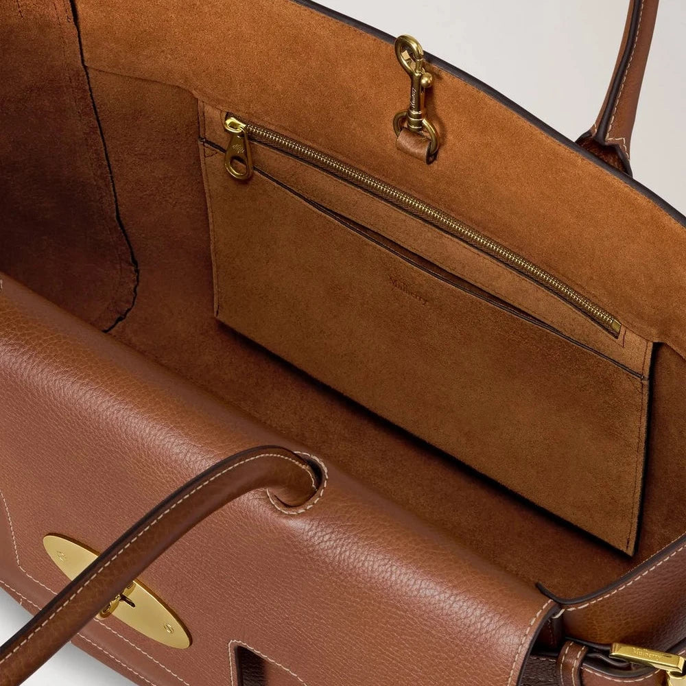 De tas is gemaakt van eikenhout NVT-leer, een vernieuwde versie van Mulberry's klassieke leer. Het wordt met de tijd mooier, krijgt een eigen patina en benadrukt het natuurlijke karakter van het leer. De messingkleurige details en gespdetails zorgen voor een moderne, stijlvolle afwerking.