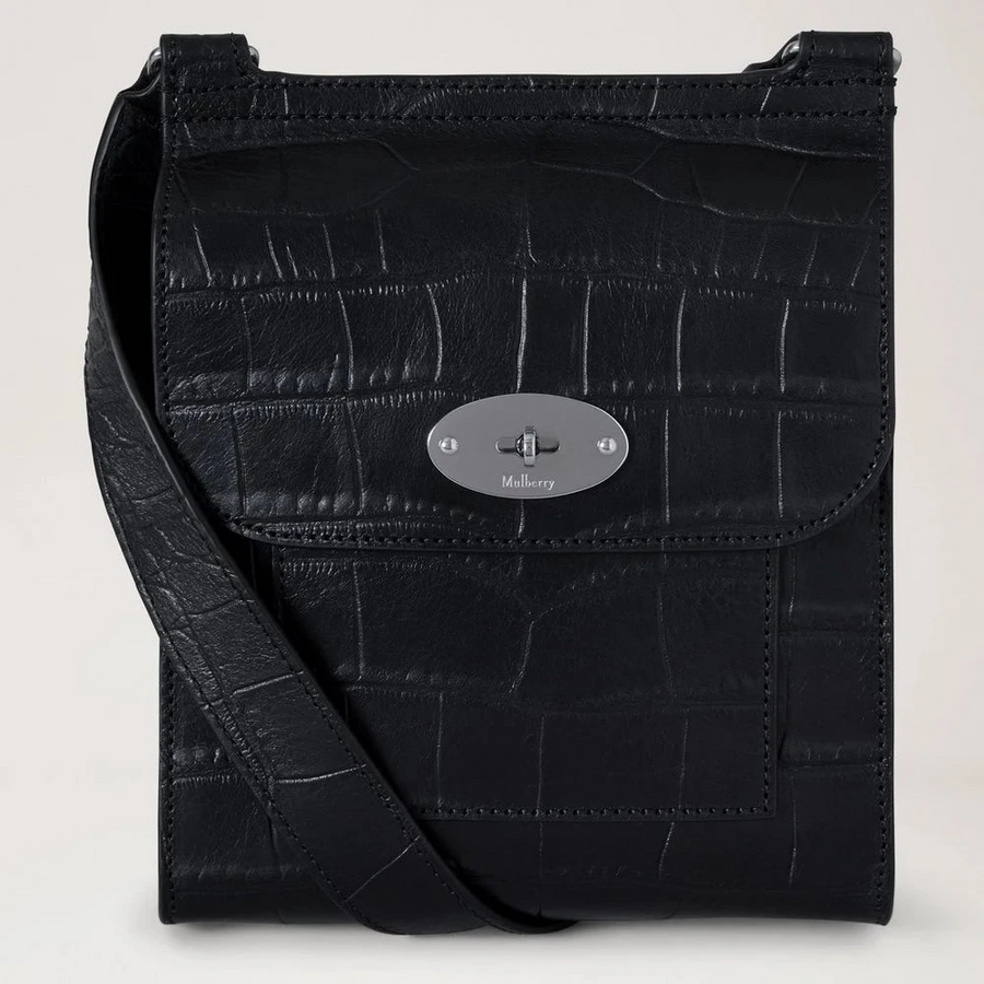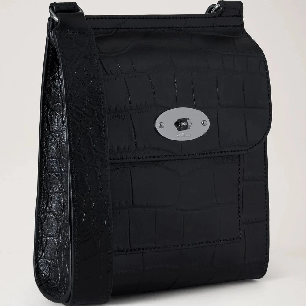 De tas is uitgevoerd in zwart Croc NVT- leer, dat een exclusieve en karaktervolle uitstraling geeft. Het reliëf croco-ontwerp gecombineerd met zilveren hardware en Mulberry's iconische Postman's Lock creëert een onderscheidende maar tijdloze expressie.