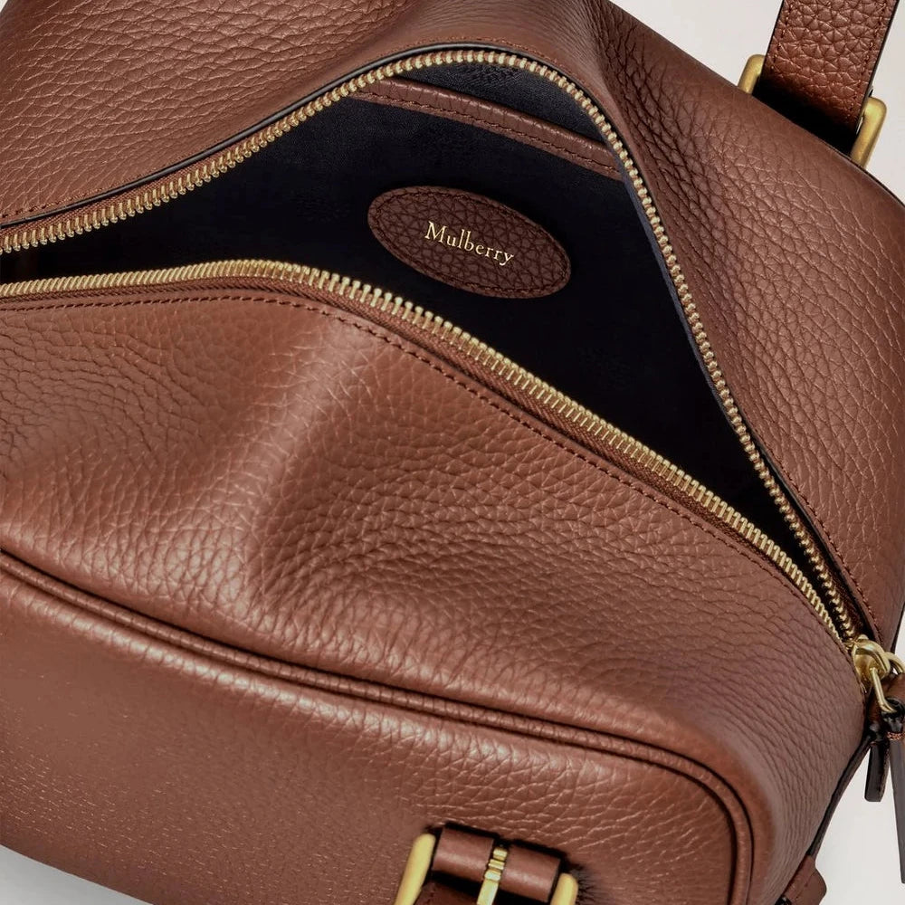 Hij sluit met een ritssluiting en heeft fijne, op paardrijden geïnspireerde gespdetails, die de tas een exclusieve en tijdloze uitstraling geven. De mooie Mulberry De medaillonhanger met een boom maakt het ontwerp compleet en voegt het bekende toe Mulberry-handtekening.