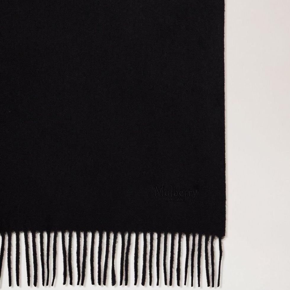 Lekker zachte sjaal van Mulberry in de kleur zwart. Perfect om je warm te houden op een koude winterdag.