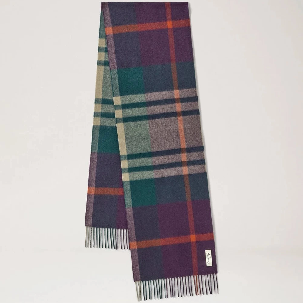 Het tijdloze ruitjespatroon en de fijne franjes aan de uiteinden geven een stijlvolle en verfijnde uitstraling, terwijl het geborduurd is Mulberrylogo voegt een exclusieve afwerking toe. Een must-have accessoire dat zowel bij het dagelijks leven als bij elegante gelegenheden past.