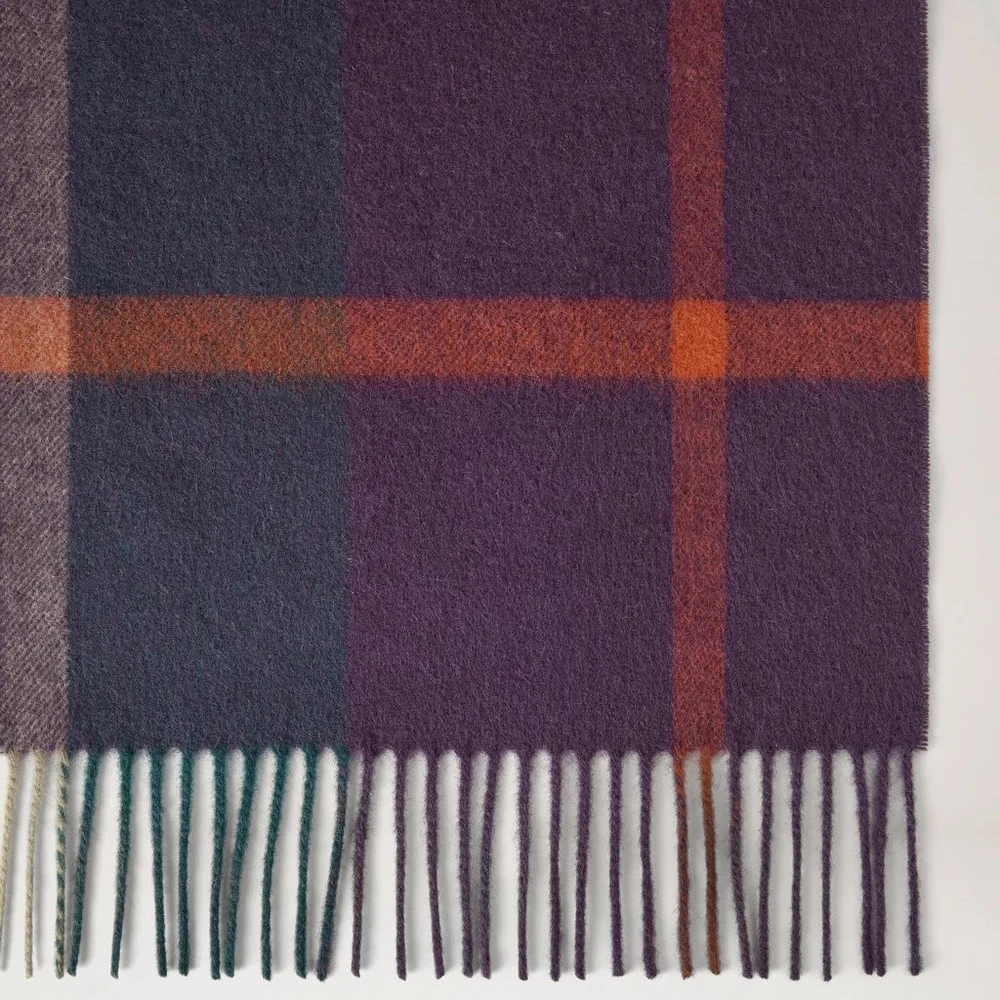 Mulberry Kleine geruite merinowollen sjaal Juniper Green & Deep Aubergine