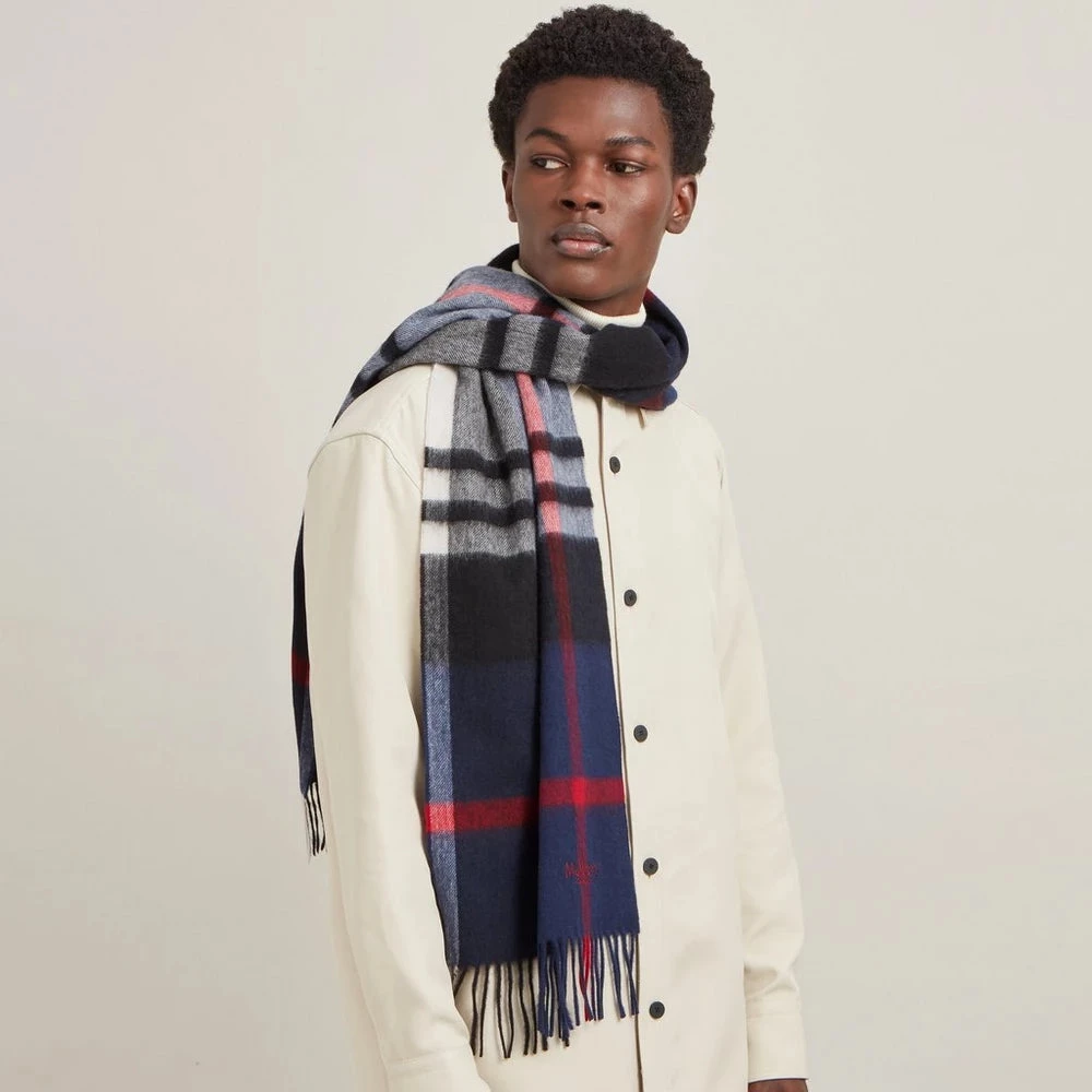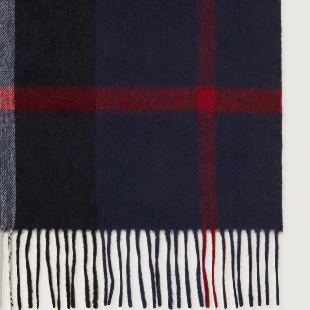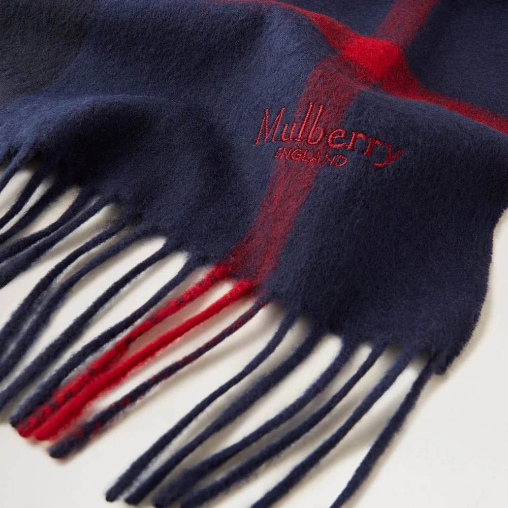 Mulberry Kleine geruite merinowollen sjaal – Night Sky & Lancaster rood / wollen sjaal in donkerblauw en rood:
