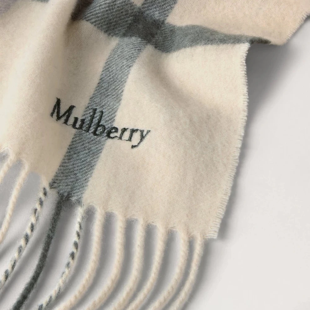 - Details: Geruit patroon, geborduurd Mulberry-logo en franjes aan de uiteinden