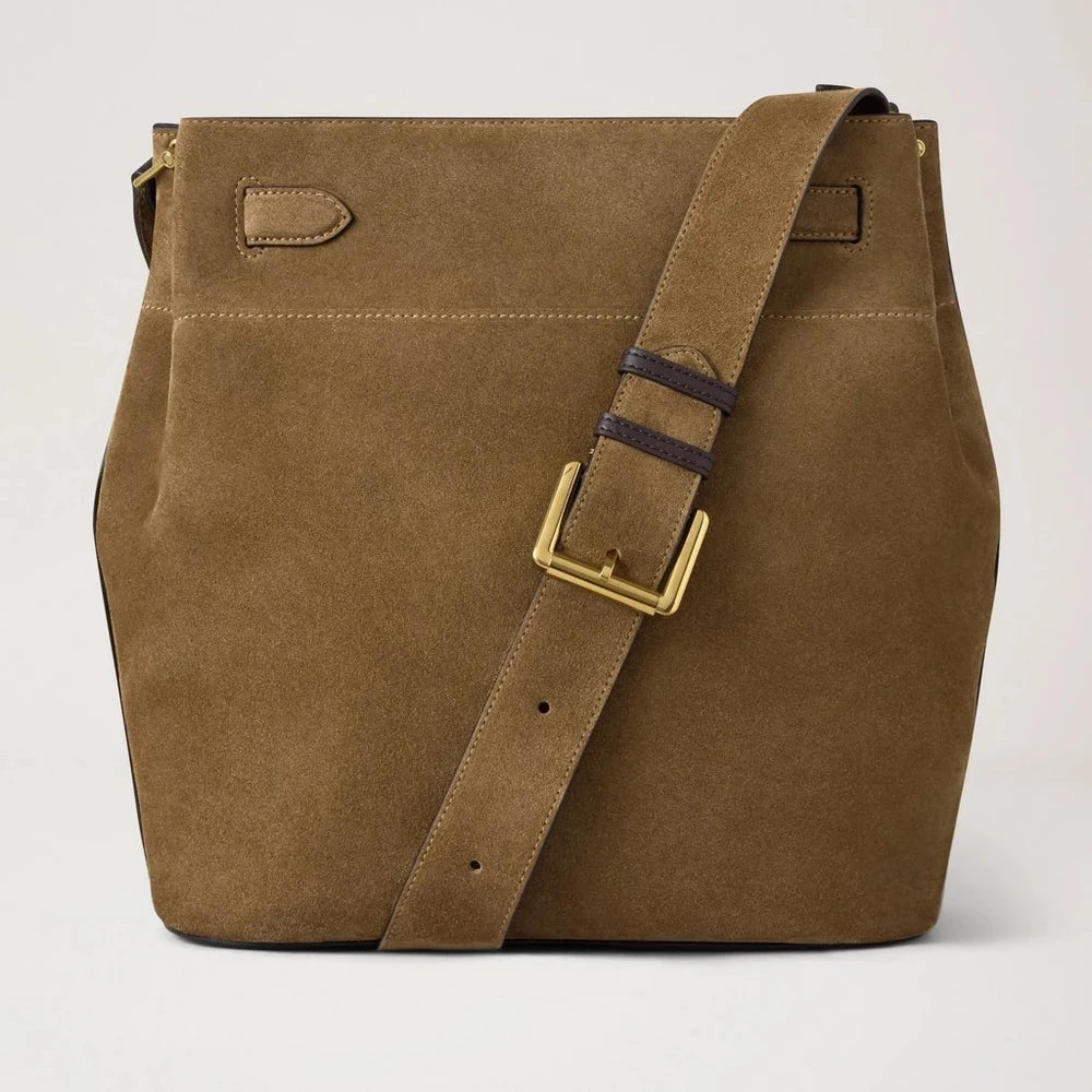 Mulberry Large Islington Bucket – Salcombe Sand Suede / Sand Colored Shoulder Bag: