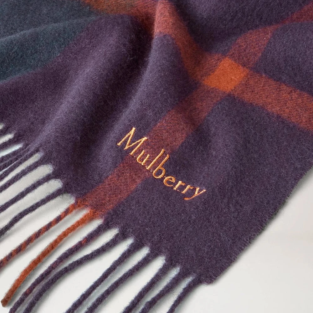 The timeless checked pattern and the fine fringes at the ends give a stylish and sophisticated look, while the embroidered Mulberry logo adds an exclusive finish. A must-have accessory that suits both everyday life and elegant occasions.