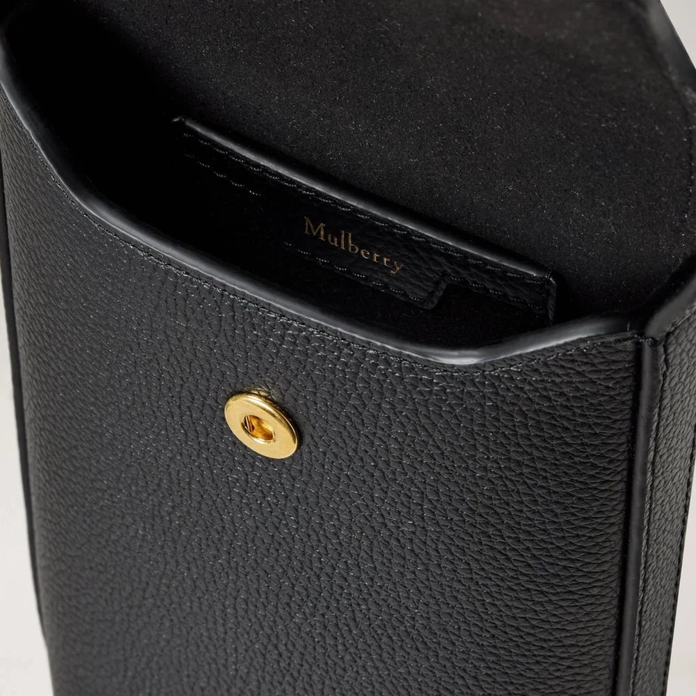 Mulberry Telefoonhoesje met drukknopen – Zwart klein klassiek graan / zwart lederen mobiele portemonnee: