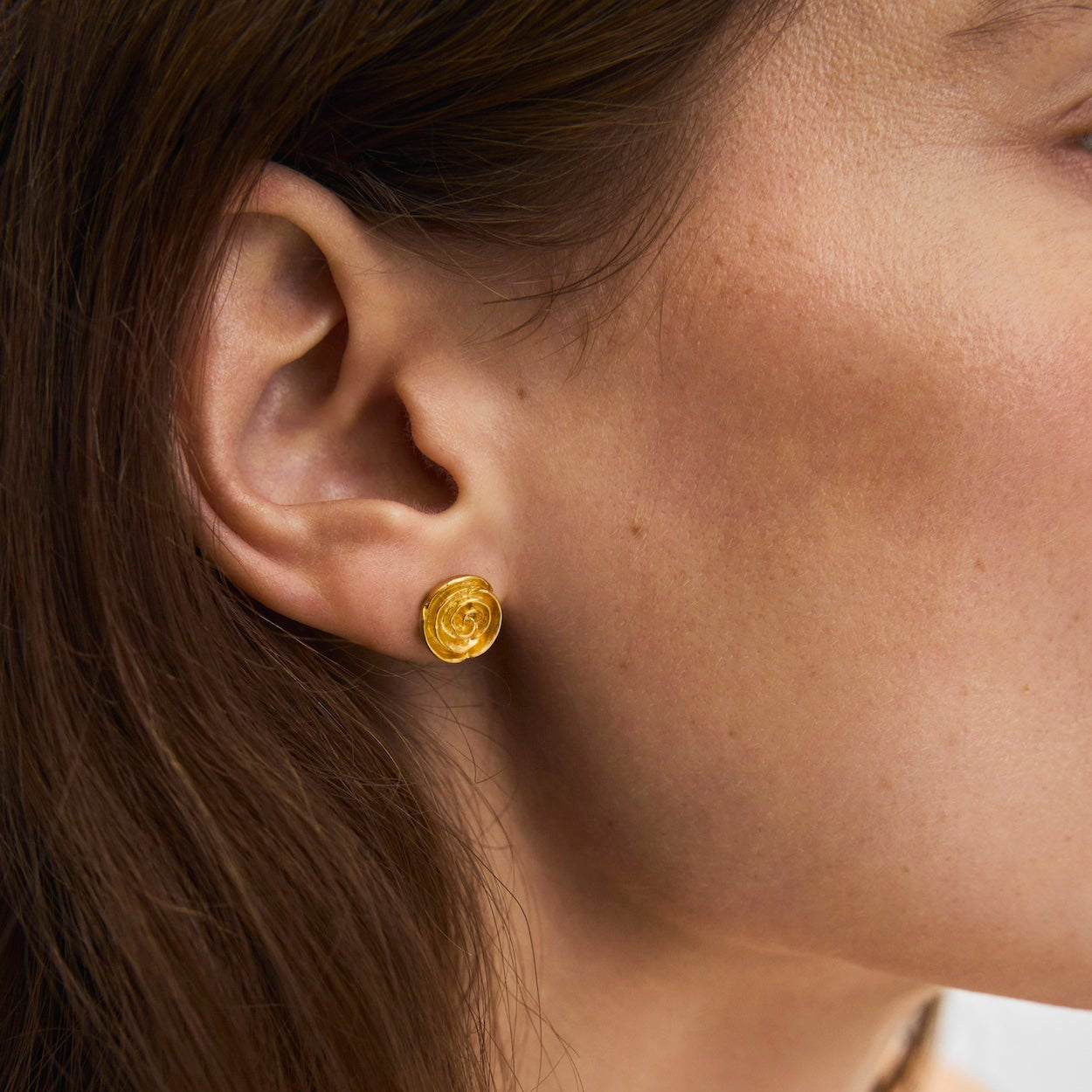 Het warme verguldsel benadrukt de organische stijl en geeft de oorbellen een zachte en romantische uitstraling. Ze zijn perfect als elegant detail op zichzelf en mooi in combinatie met andere oorbellen voor een persoonlijkere look.