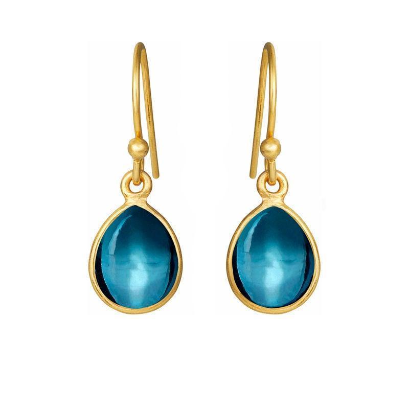 Susanne Friis Bjørner vergulde oorbellen met blauw kristal: