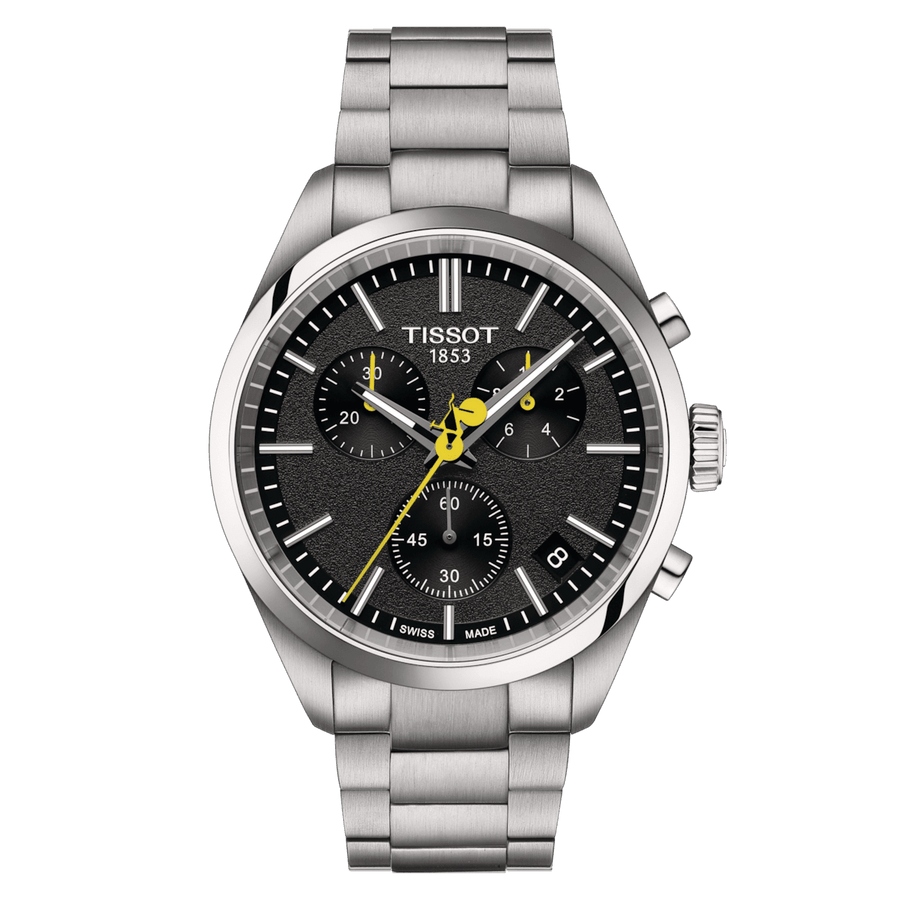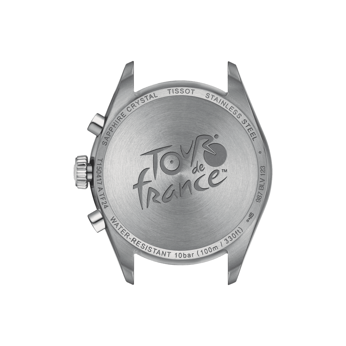 Het ingebouwde G10.212 chronokwartsuurwerk levert precisie en robuustheid, aangevuld met waterbestendigheid tot 10 bar (100 meter/330 voet). Zichtbaarheid bij weinig licht wordt verzekerd door de Super-LumiNova®-coating op de naaldvormige handen. De achterkant van dit Grand Tour PR100-model is gegraveerd met het betreffende Tour de France-logo.
